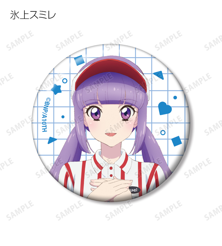 星宮いちご、霧矢あおい、紫吹 蘭、藤堂ユリカ、大空あかり、氷上スミレ、新条ひなき、紅林珠璃、神崎美月、夏樹みくるの描き下ろしイラストを缶バッジに仕上げました。