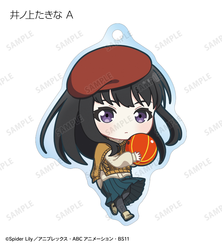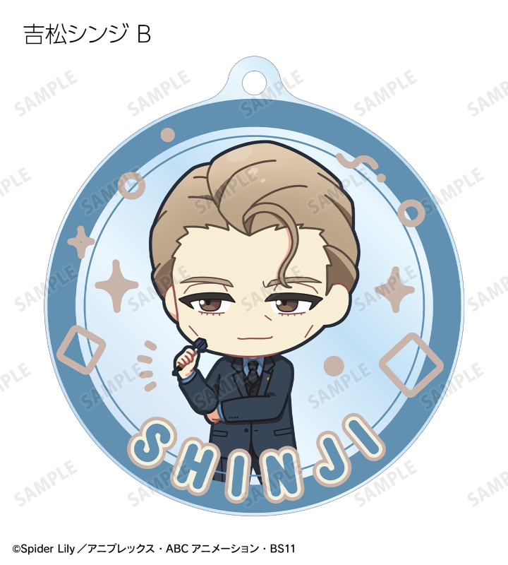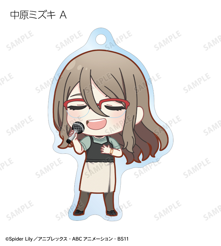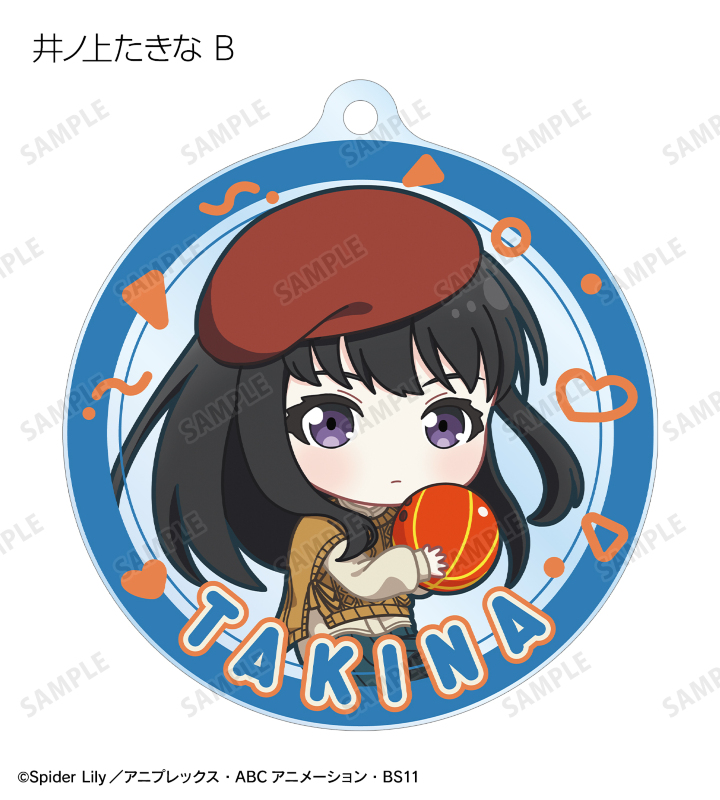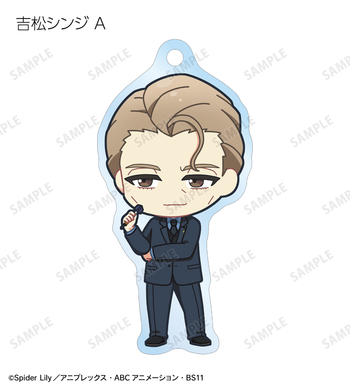 錦木千束、井ノ上たきな、中原ミズキ、クルミ、ミカ、真島、ロボ太、吉松シンジの描き起こしちびキャライラストをアクリルキーホルダーに仕上げました。