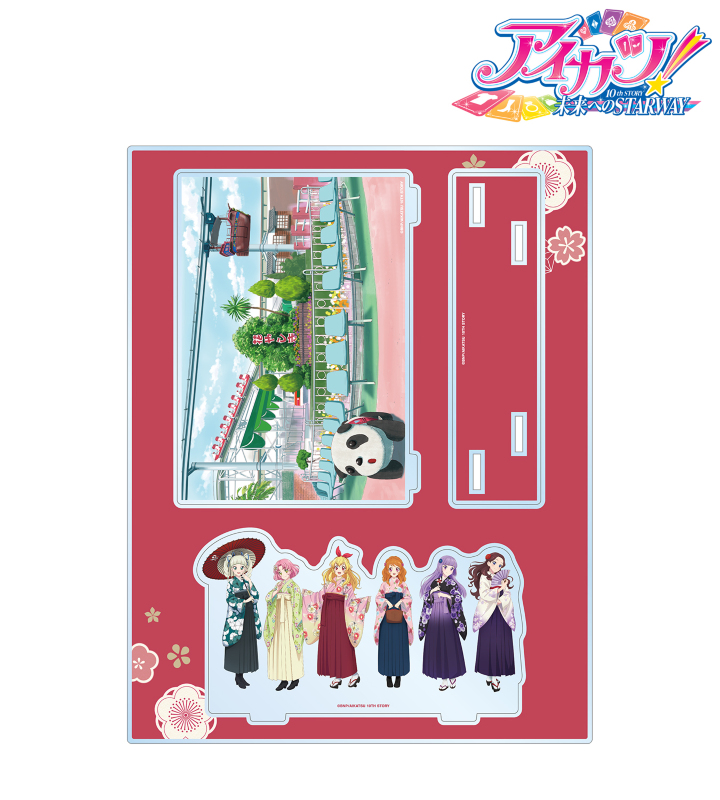 『アイカツ! 10th STORY ~未来へのSTARWAY~』×「浅草花やしき」のコラボレーションアイテム「描き下ろし 集合 袴ver. アクリルジオラマ」の登場です。