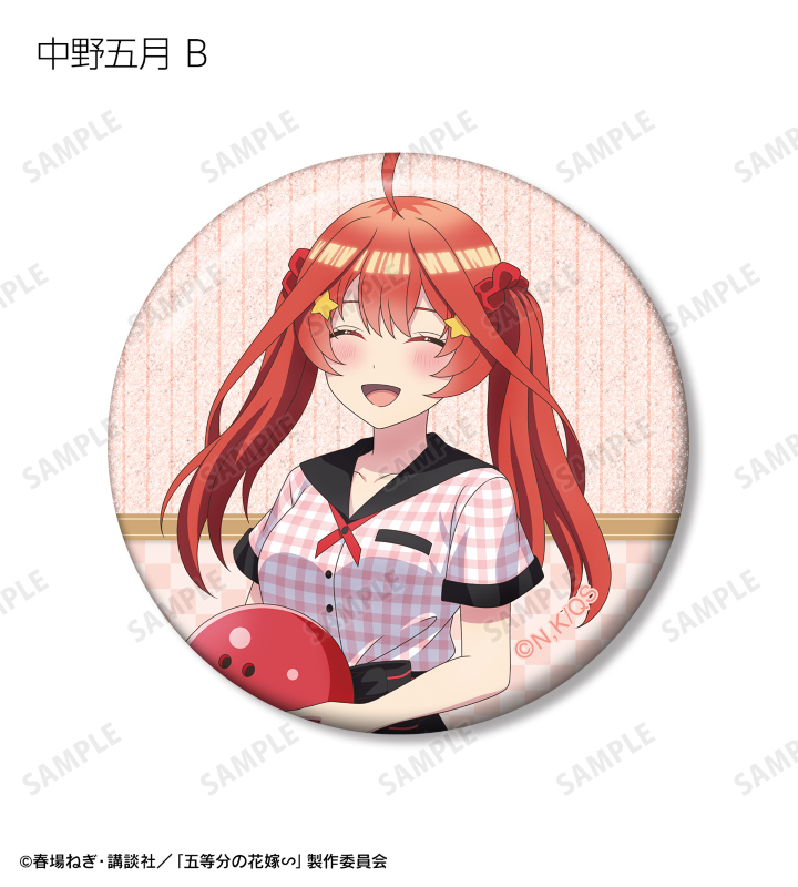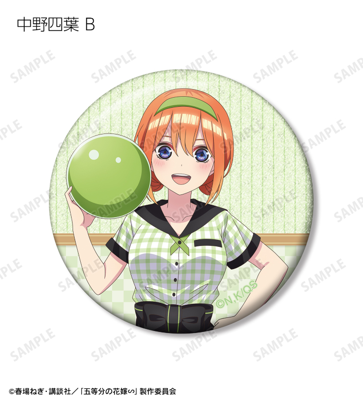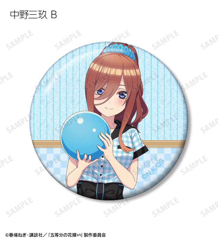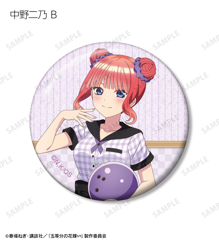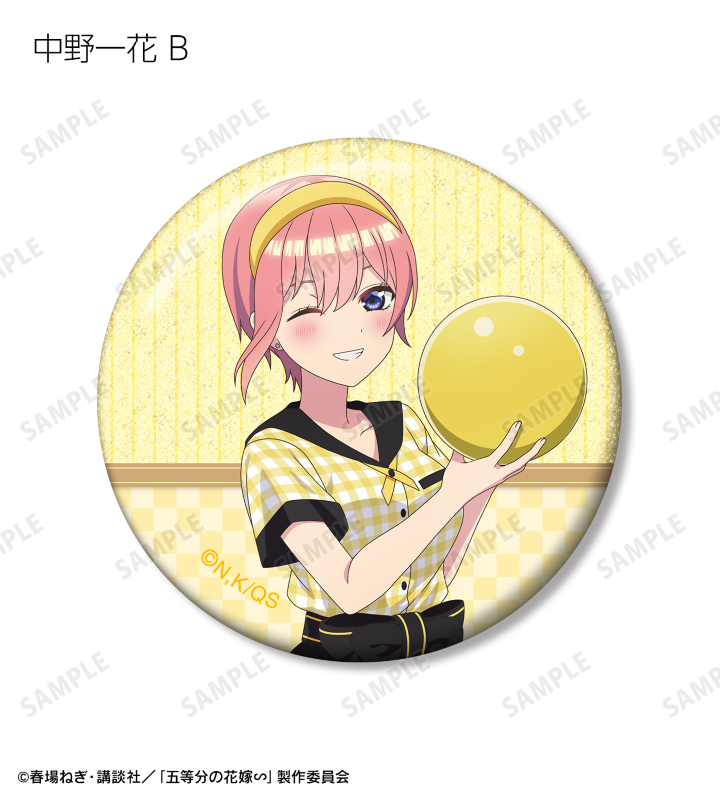TVスペシャルアニメ「五等分の花嫁∽」×「ROUND1」のコラボレーションアイテム「描き下ろし ボウラーガールver. トレーディンググリッター缶バッジ」の登場です。