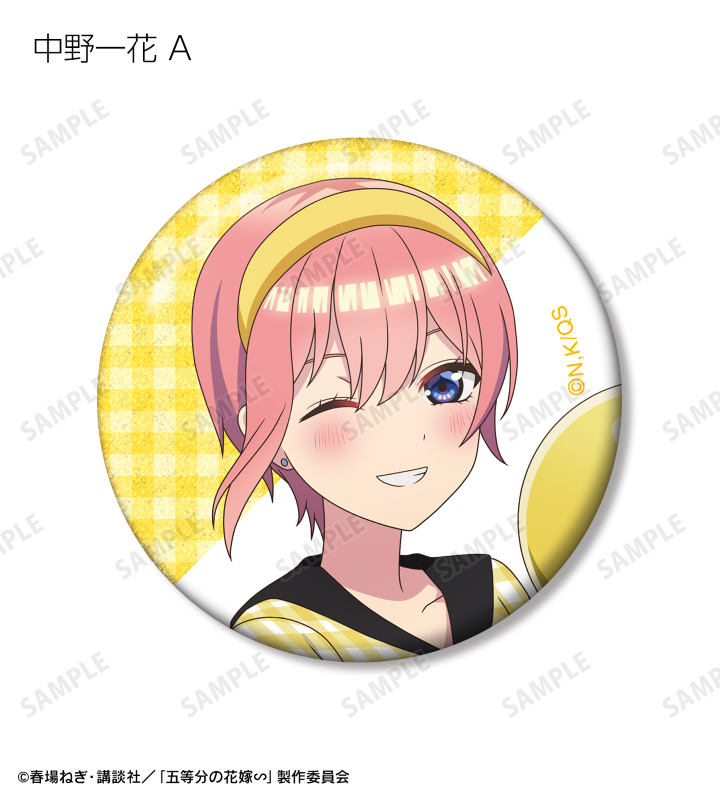 中野一花、中野二乃、中野三玖、中野四葉、中野五月の描き下ろしイラストをキャラカラーに合わせたグリッター加工を施した缶バッジに仕上げました。