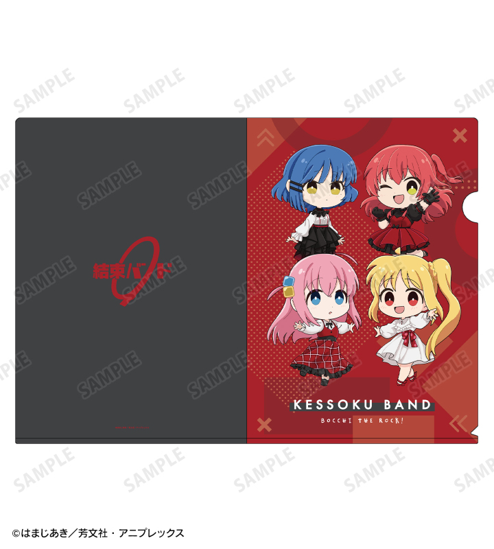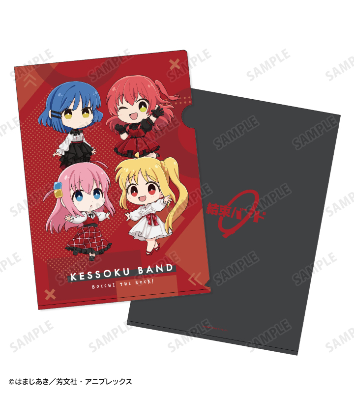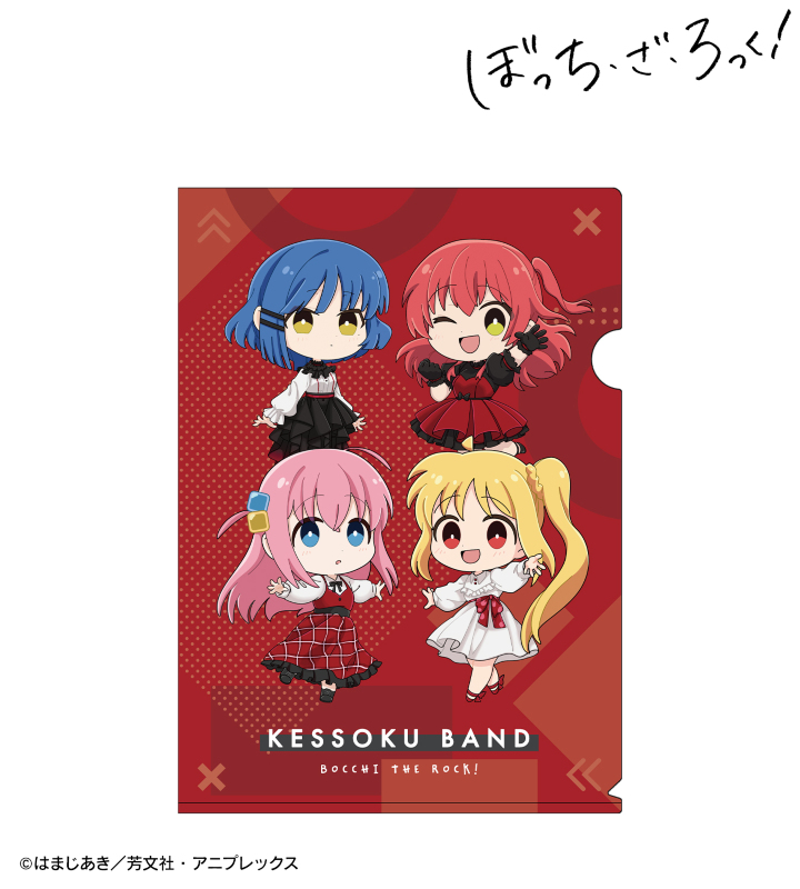 アニメ「ぼっち・ざ・ろっく!」×「RED゜ TOKYO TOWER」のコラボレーションアイテム「結束バンド ちびキャラ 赤いドレスver. クリアファイル」の登場です。