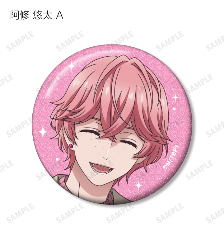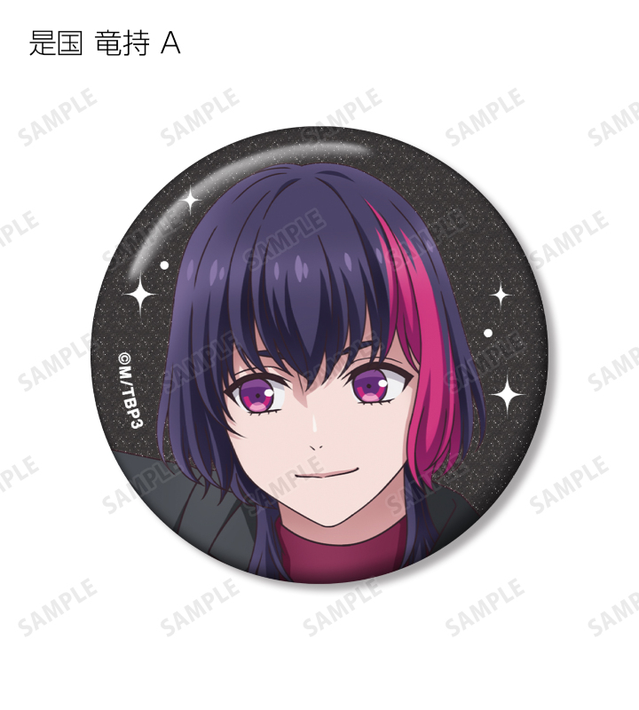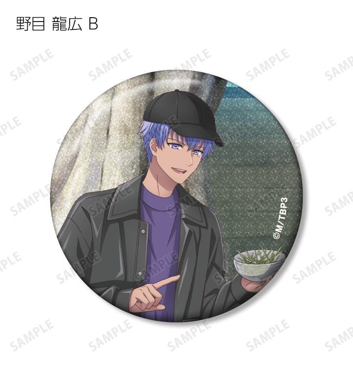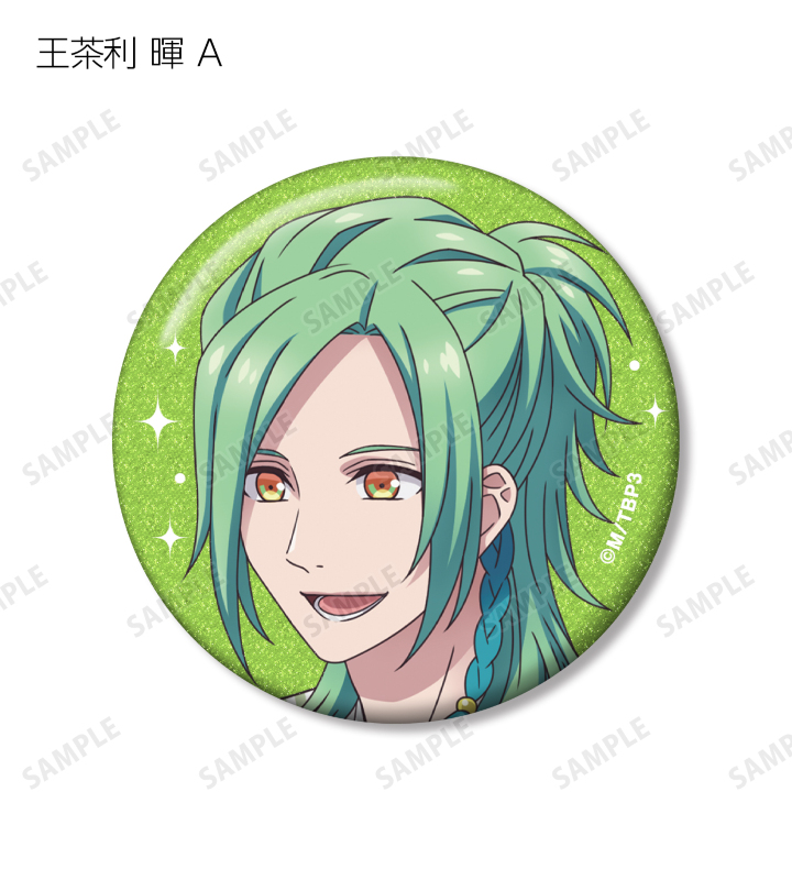 北門 倫毘沙、是国 竜持、金城 剛士、阿修 悠太、王茶利 暉、野目 龍広、寺光 唯月、寺光 遙日の描き下ろしイラストをグリッター加工を施した缶バッジに仕上げました。