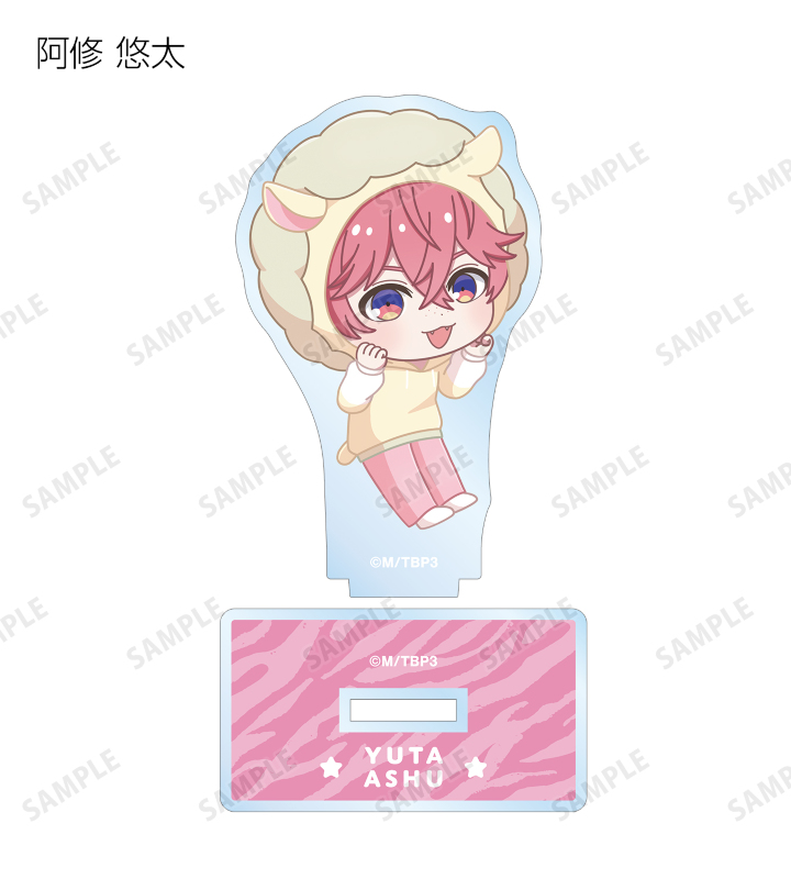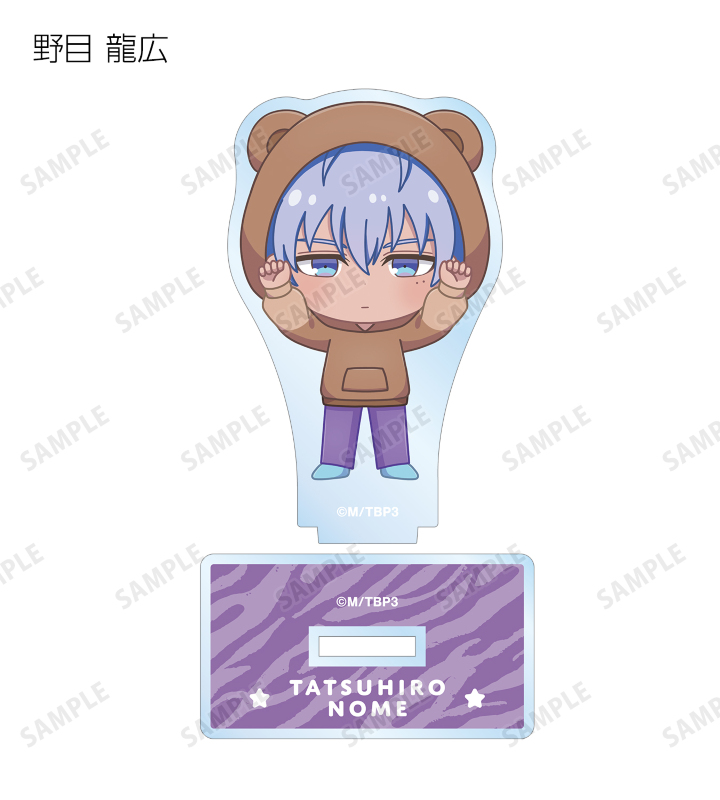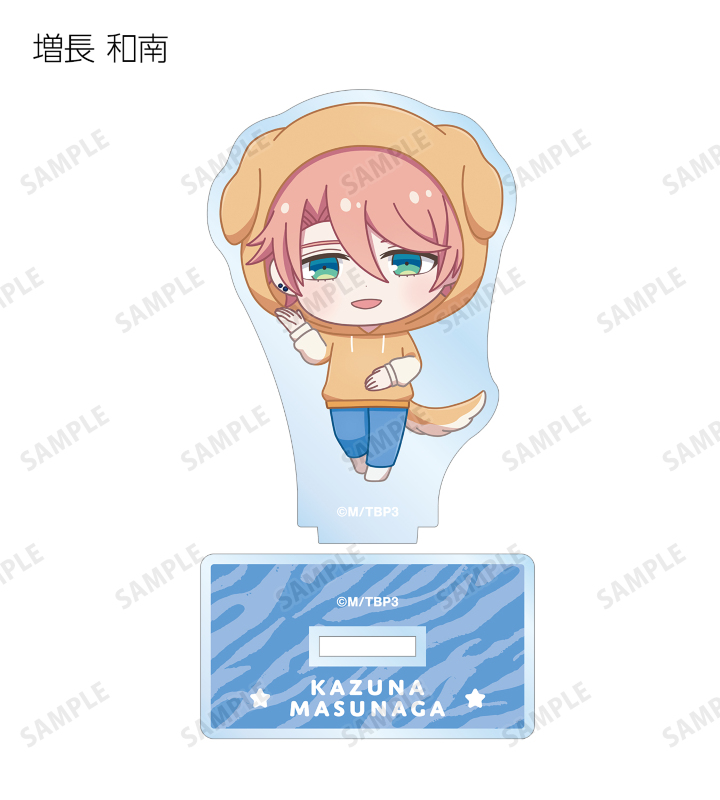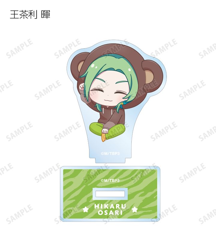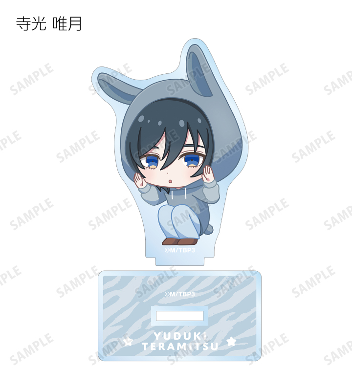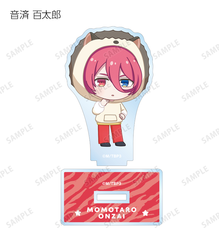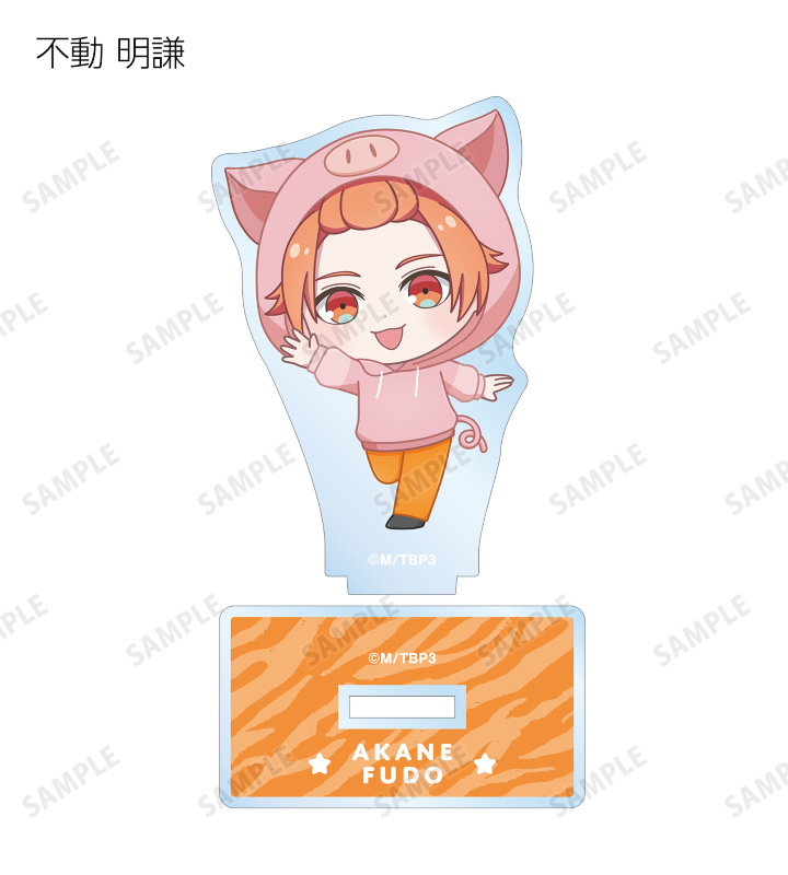 北門 倫毘沙、是国 竜持、金城 剛士、阿修 悠太、愛染 健十、増長 和南、音済 百太郎、王茶利 暉、野目 龍広、釈村 帝人、寺光 唯月、寺光 遙日、不動 明謙、殿 弥勒、A輔、B太の描き起こしちびキャライラストをメインにデザインし、アクリルスタンドに仕上げました。