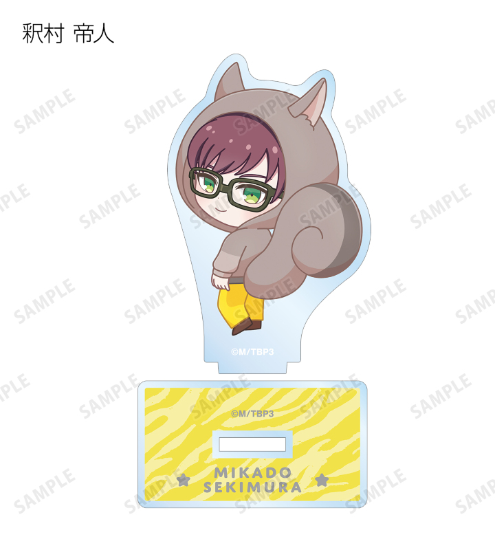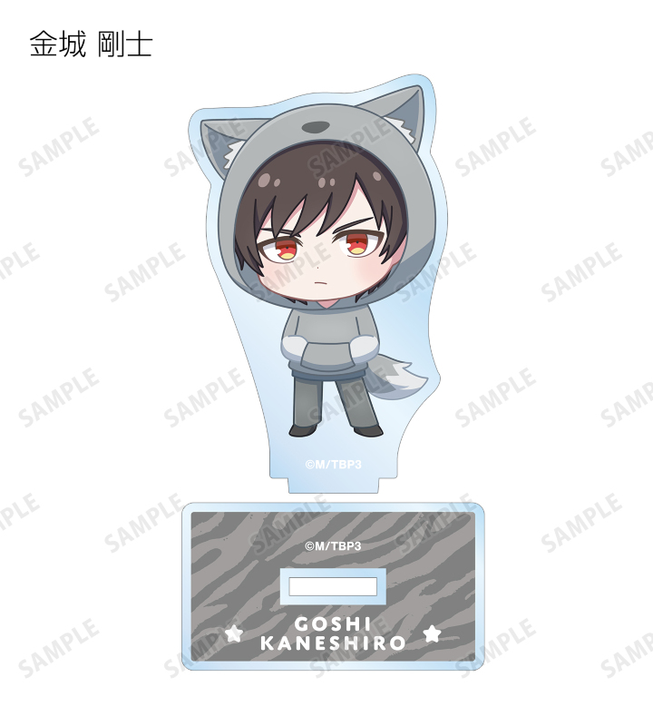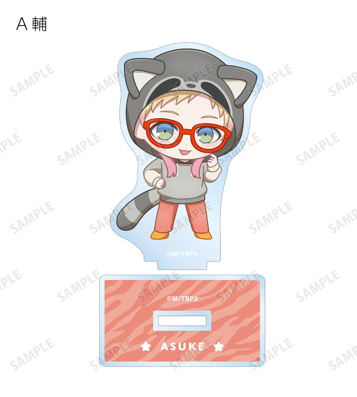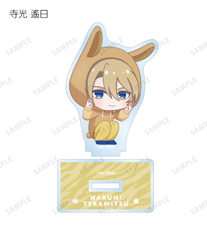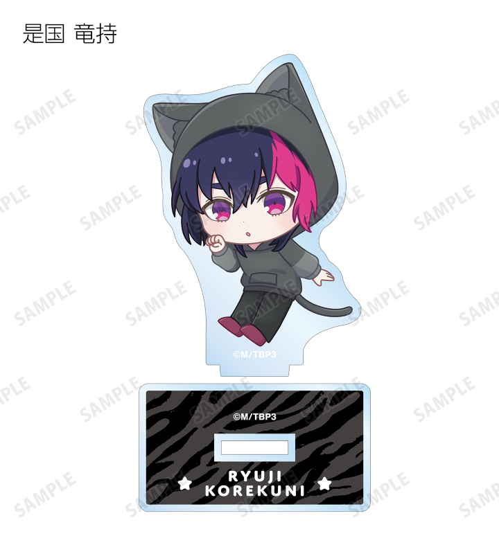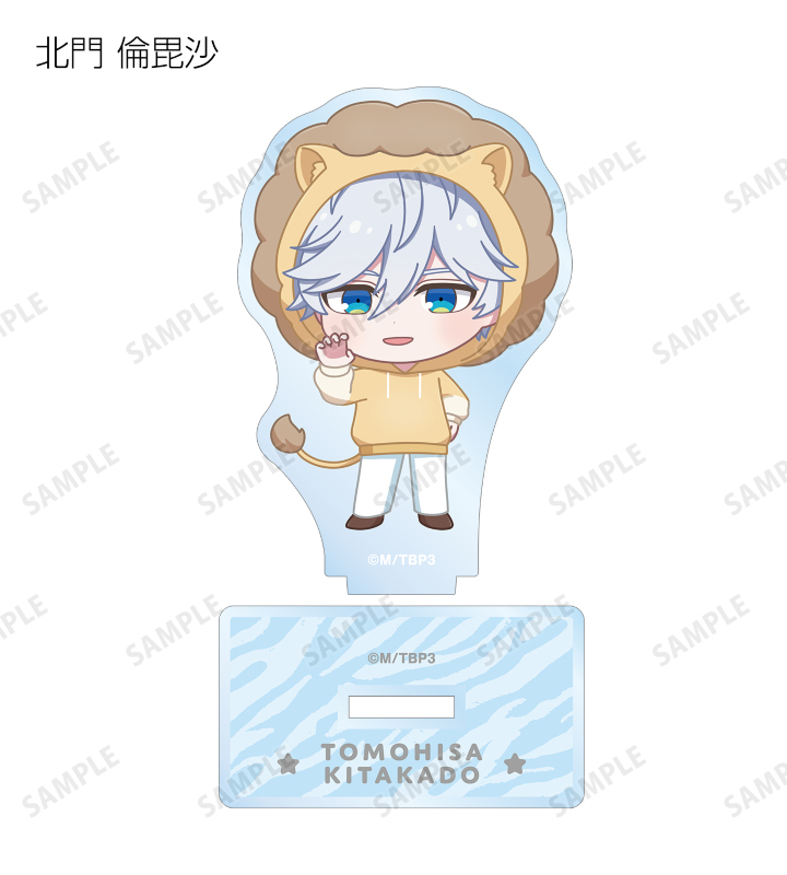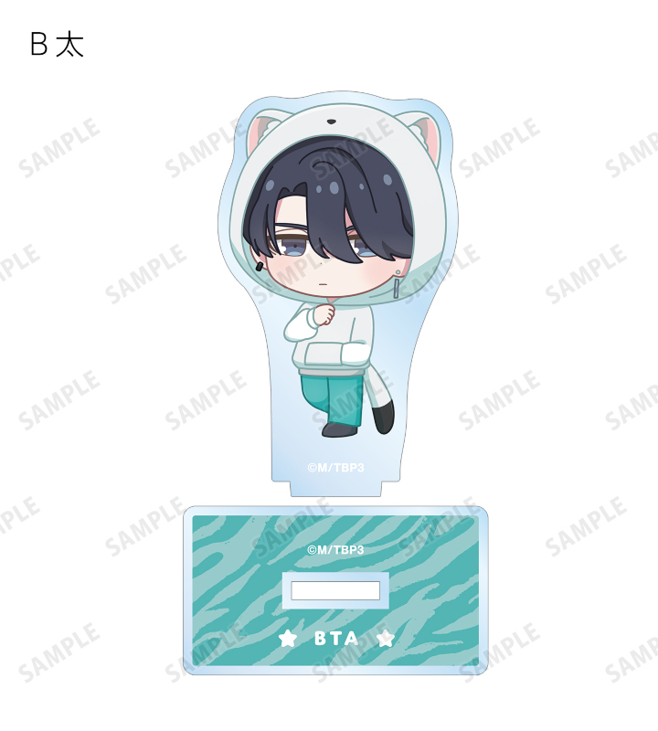北門 倫毘沙、是国 竜持、金城 剛士、阿修 悠太、愛染 健十、増長 和南、音済 百太郎、王茶利 暉、野目 龍広、釈村 帝人、寺光 唯月、寺光 遙日、不動 明謙、殿 弥勒、A輔、B太の描き起こしちびキャライラストをメインにデザインし、アクリルスタンドに仕上げました。