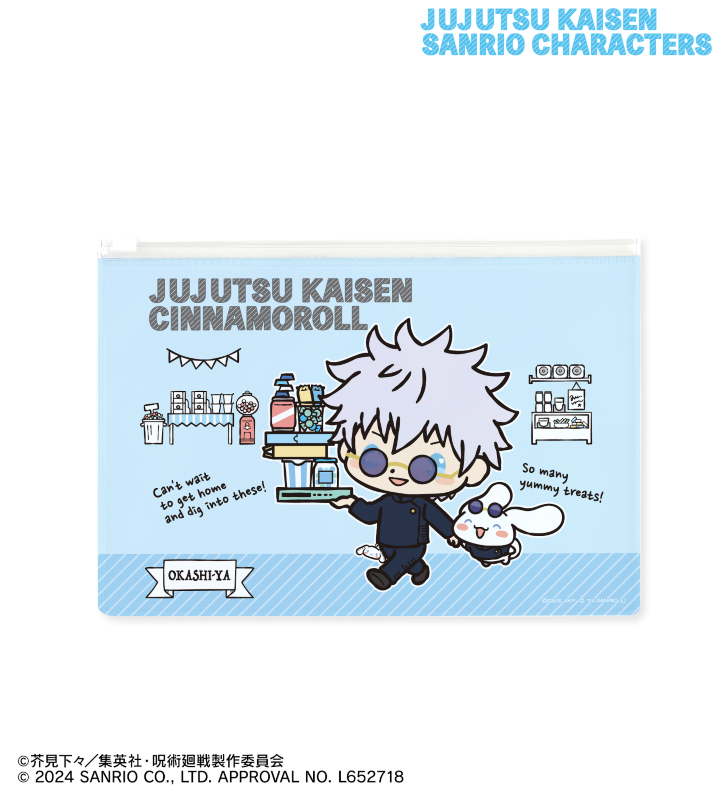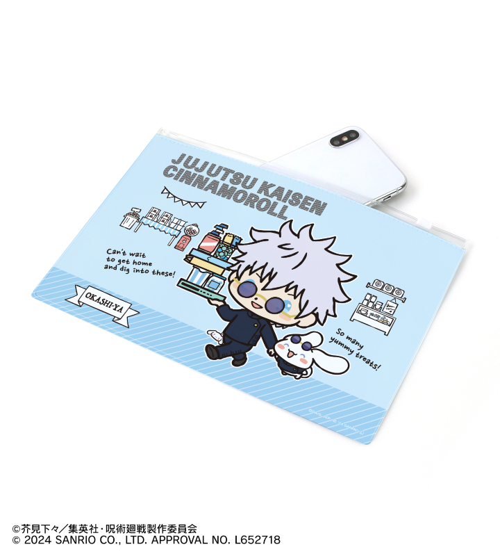 五条 悟×シナモロールのイラストをビニールフラットポーチに仕上げました。