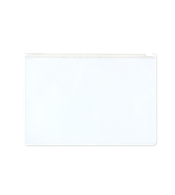 丈夫で汚れにくいビニール素材で、小物などを収納してかさばらず持ち運びいただけます。