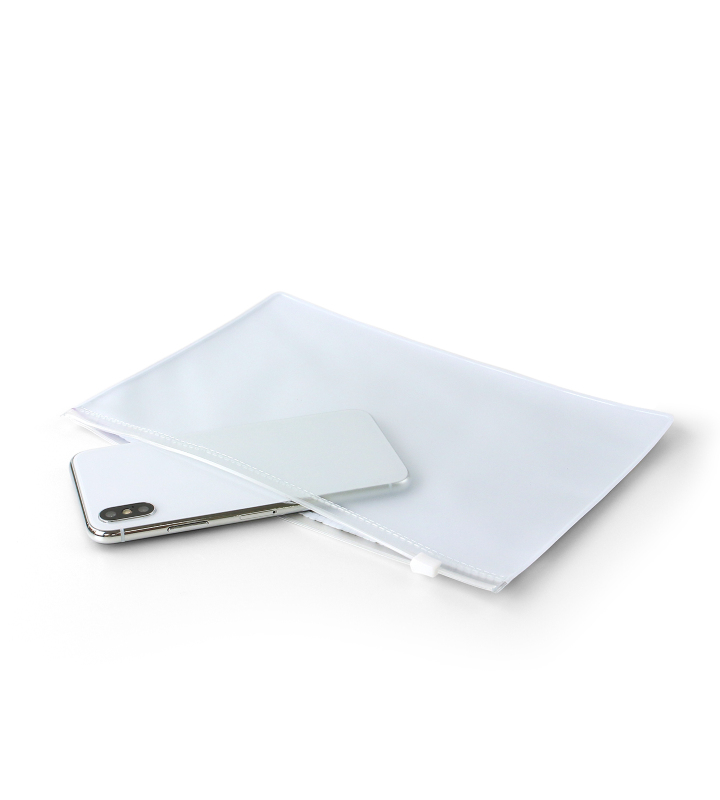 丈夫で汚れにくいビニール素材で、小物などを収納してかさばらず持ち運びいただけます。