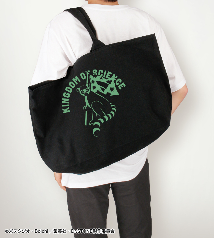 TVアニメ「Dr.STONE」×「東武動物公園」のコラボレーションアイテム「石神千空 ワオキツネザルモチーフBIGジップトートバッグ」の登場です。