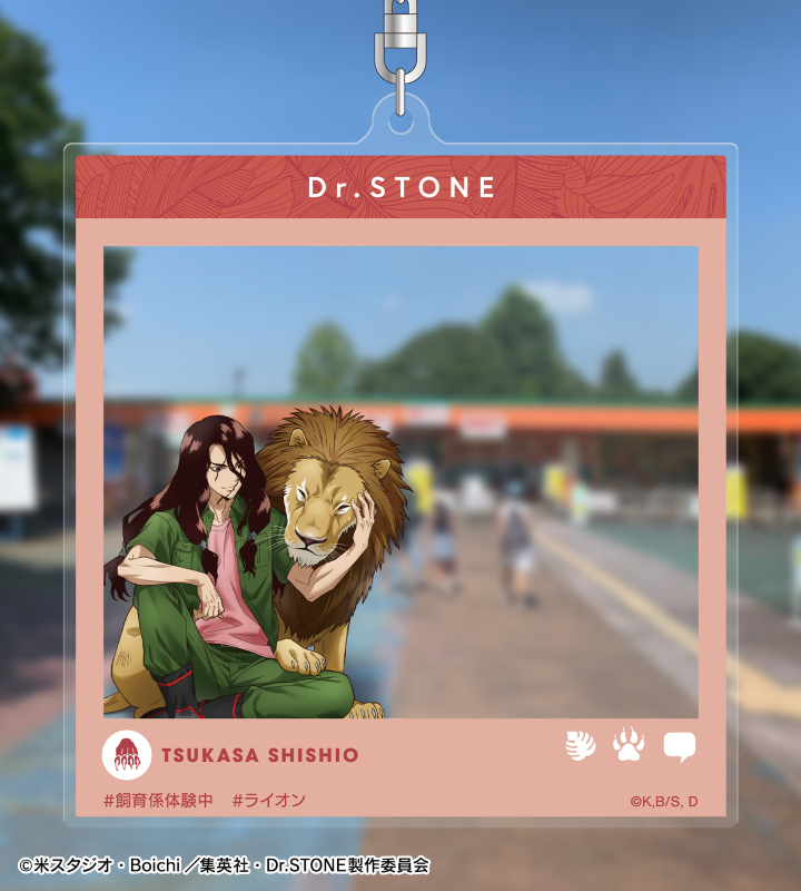 TVアニメ「Dr.STONE」×「東武動物公園」のコラボレーションアイテム「描き下ろし 獅子王司 飼育係ver. SNS風BIGアクリルキーホルダー」の登場です。
