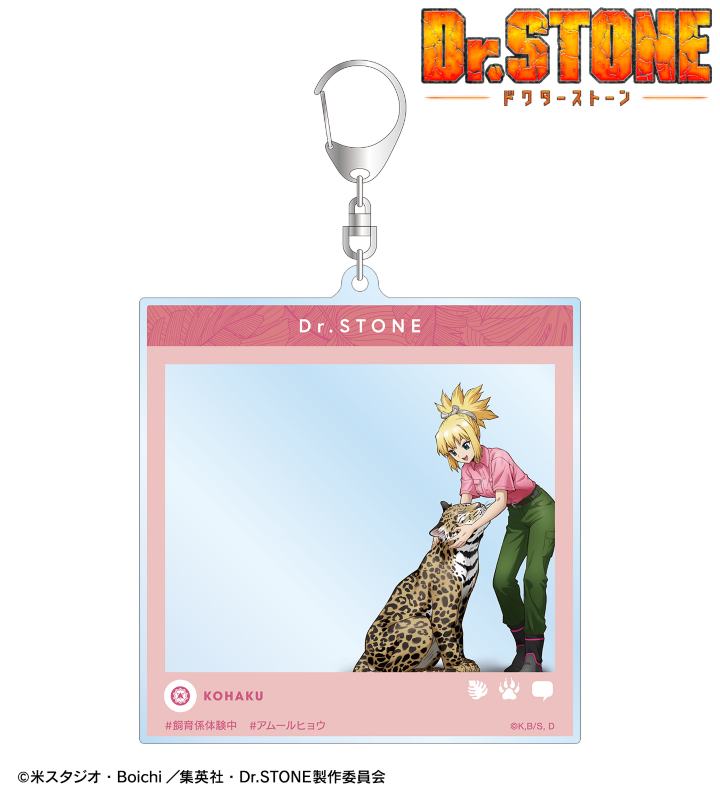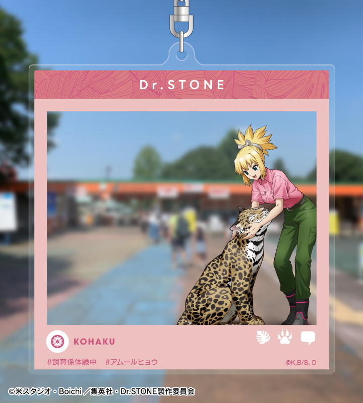 TVアニメ「Dr.STONE」×「東武動物公園」のコラボレーションアイテム「描き下ろし コハク 飼育係ver. SNS風BIGアクリルキーホルダー」の登場です。