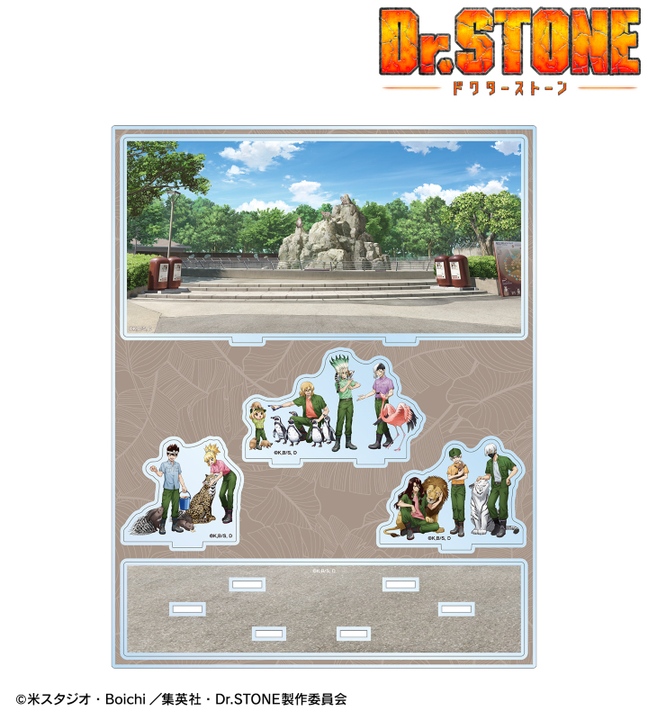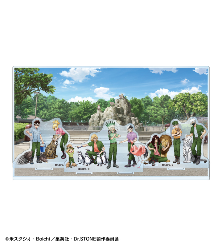 TVアニメ「Dr.STONE」×「東武動物公園」のコラボレーションアイテム「描き下ろし 集合 飼育係ver. アクリルジオラマ」の登場です。