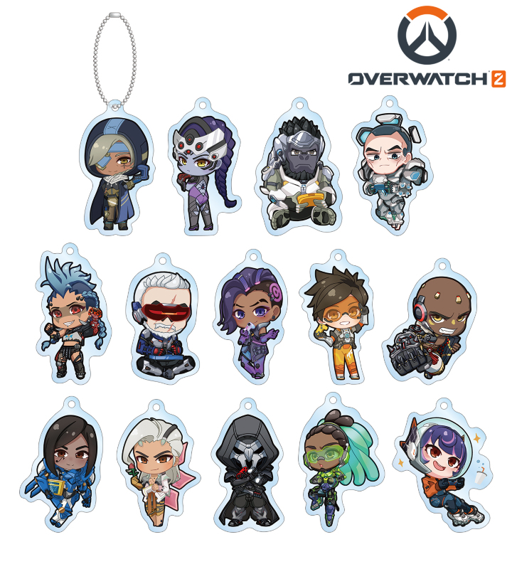 アナ、ウィドウメイカー、ウィンストン、シグマ、ジャンカー・クイーン、ソルジャー76、ソンブラ、トレーサー、ドゥームフィスト、ファラ、ライフウィーバー、リーパー、ルシオ、ジュノのちびキャライラストをアクリルキーホルダーに仕上げました。