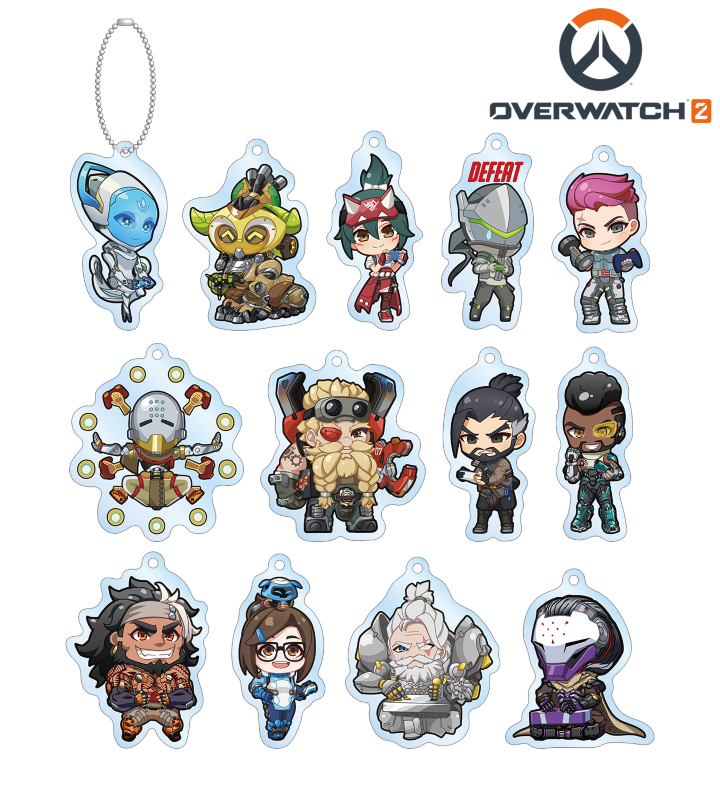 エコー、オリーサ、キリコ、ゲンジ、ザリア、ゼニヤッタ、トールビョーン、ハンゾー、バティスト、マウガ、メイ、ラインハルト、ラマットラのちびキャライラストをアクリルキーホルダーに仕上げました。