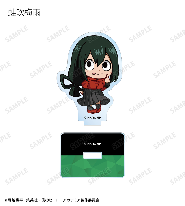 緑谷出久、爆豪勝己、麗日お茶子、轟焦凍、蛙吹梅雨、切島鋭児郎、上鳴電気、耳郎響香、瀬呂範太、通形ミリオ、天喰環、波動ねじれ、心操人使、オールマイト、相澤消太のちびキャラビジュアルをアクリルスタンドに仕上げました。