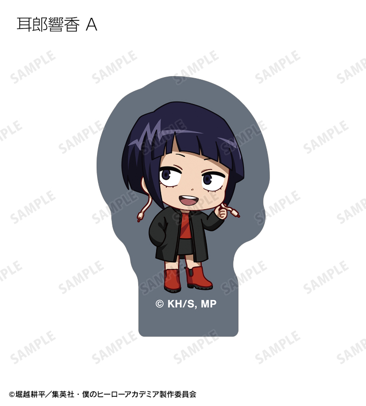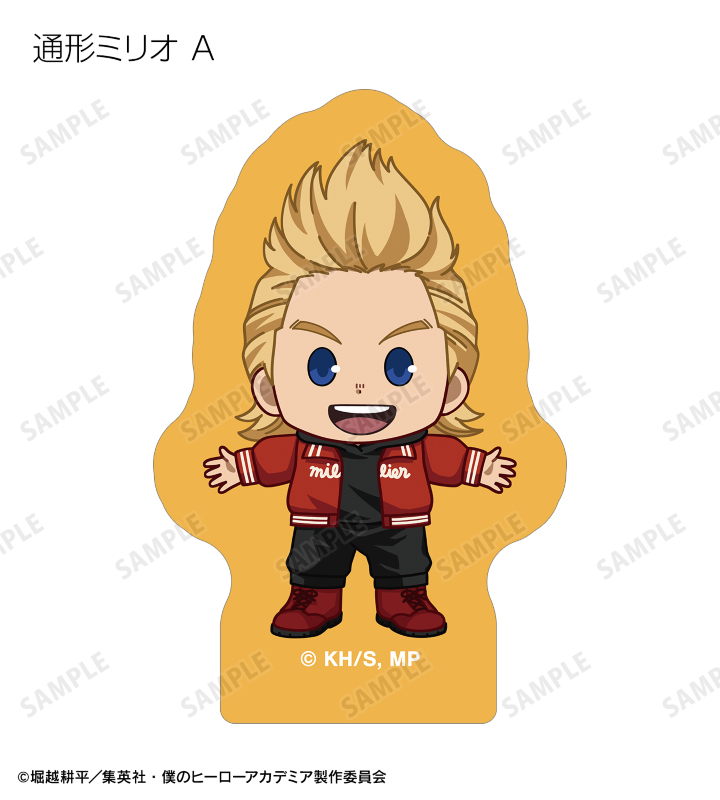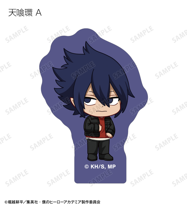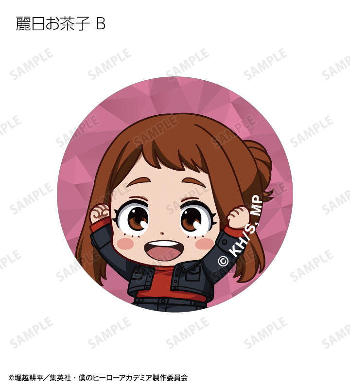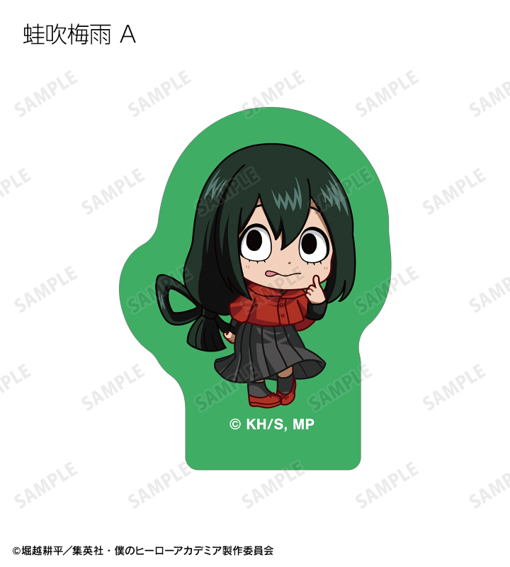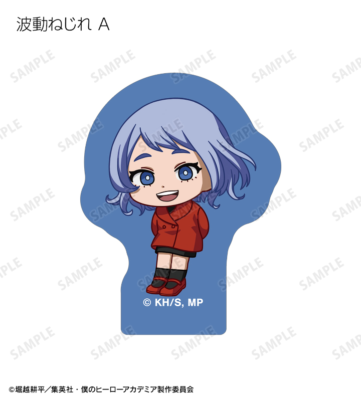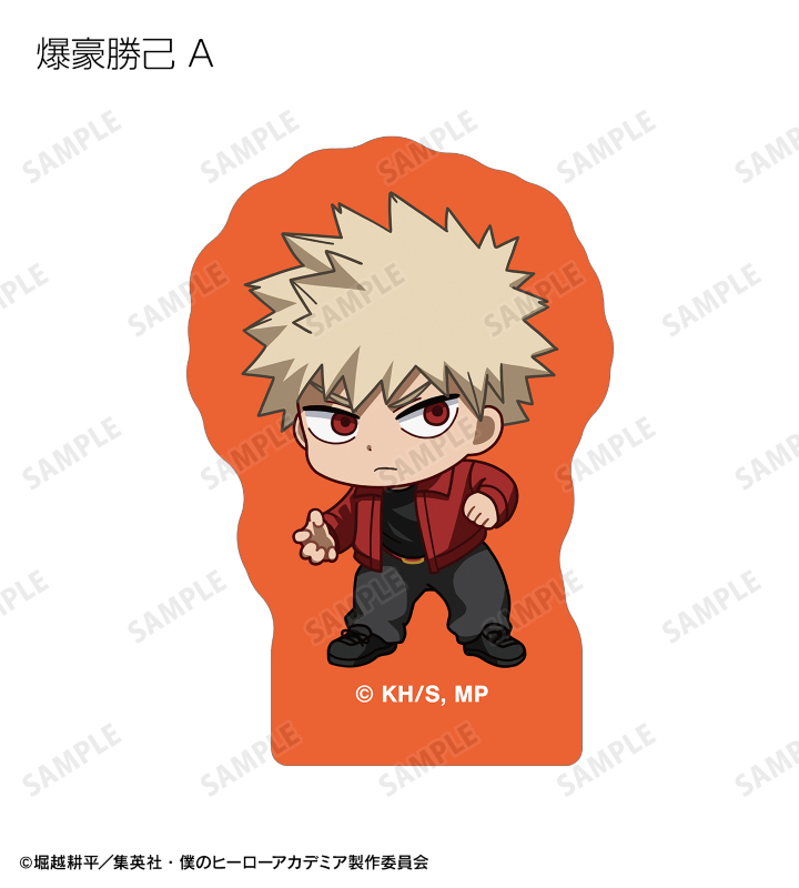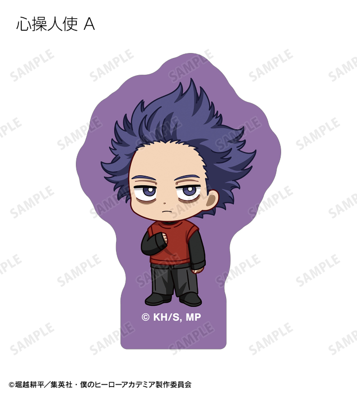 緑谷出久、爆豪勝己、麗日お茶子、轟焦凍、蛙吹梅雨、切島鋭児郎、上鳴電気、耳郎響香、瀬呂範太、通形ミリオ、天喰環、波動ねじれ、心操人使、オールマイト、相澤消太のちびキャラビジュアルをフレークシールに仕上げました。