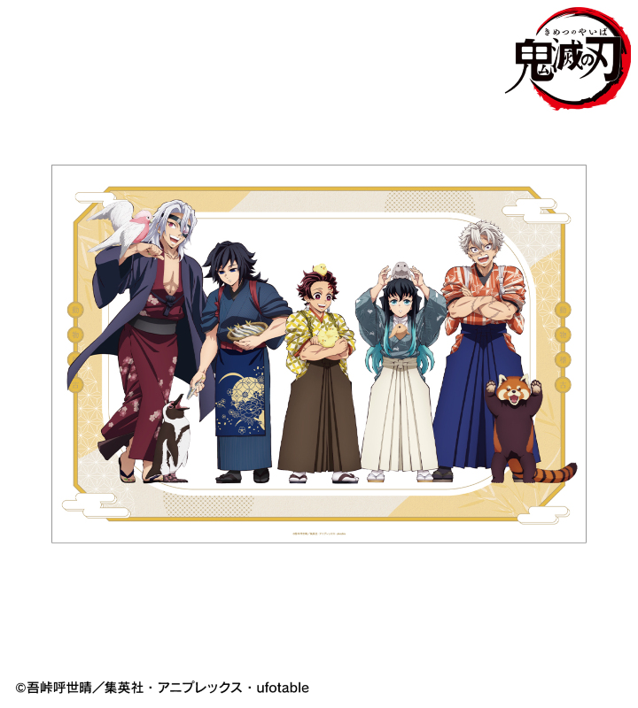 アニメ「鬼滅の刃」から「東武動物公園」のオリジナルアイテム「描き下ろし 集合 動物稽古ver. A3マット加工ポスター」の登場です。