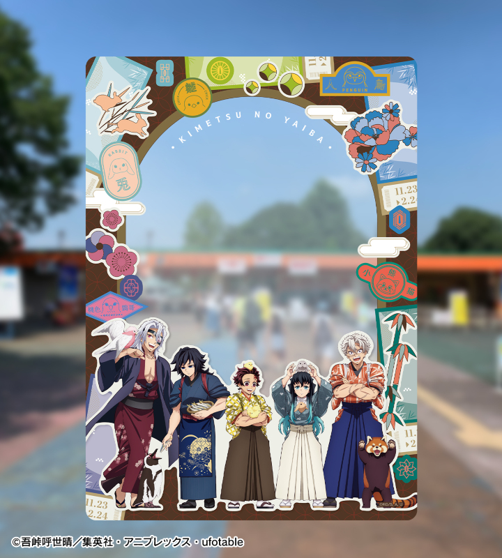 アニメ「鬼滅の刃」から「東武動物公園」のオリジナルアイテム「描き下ろし 集合 動物稽古ver. A5硬質ケース」の登場です。