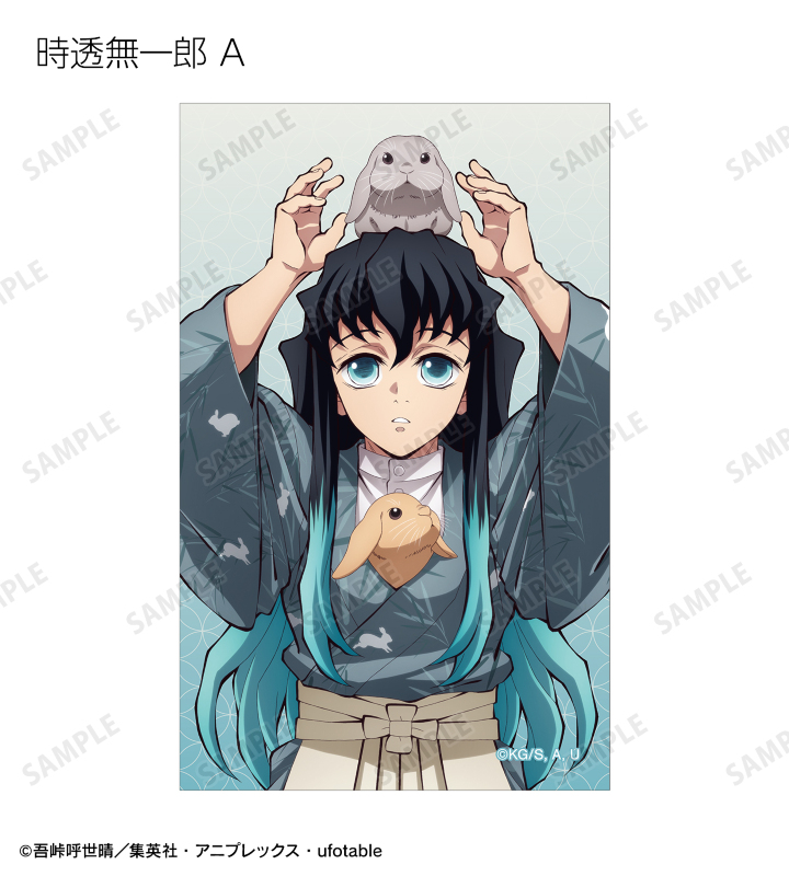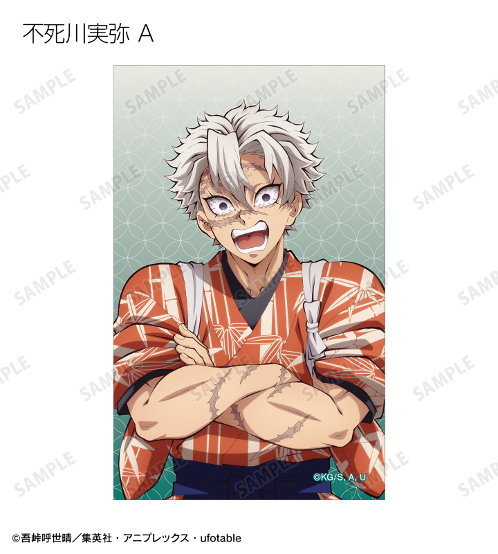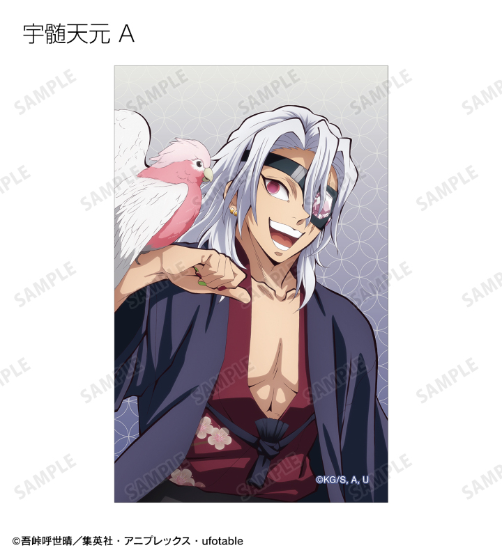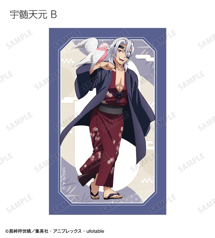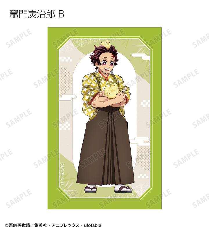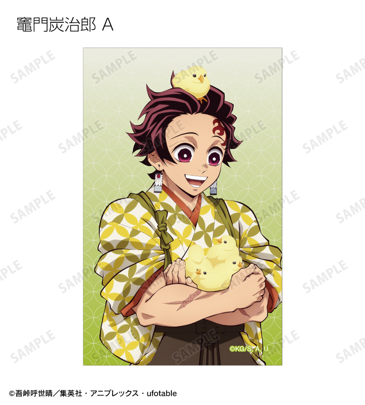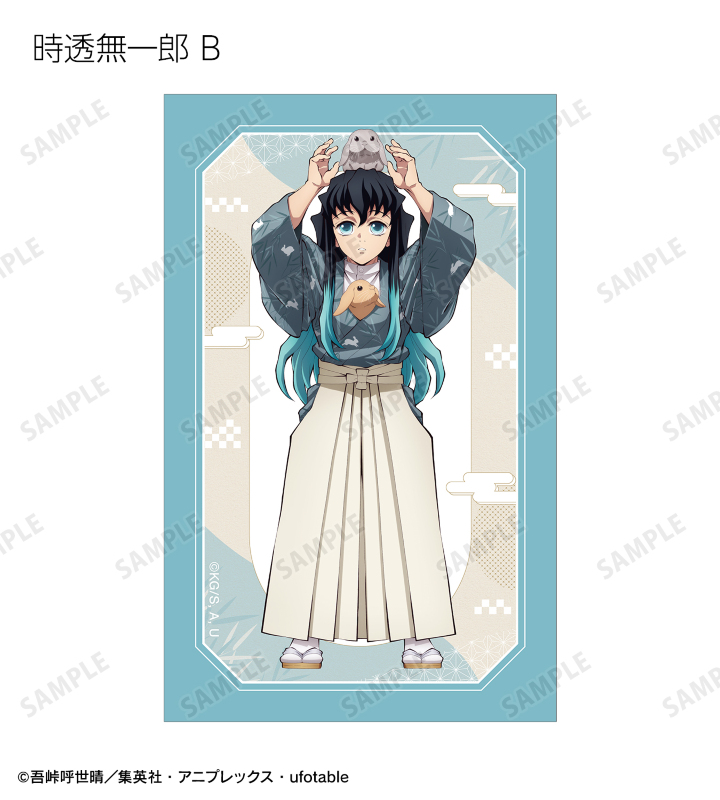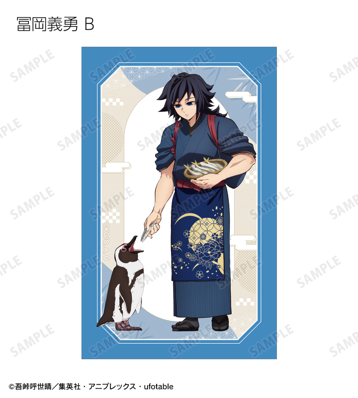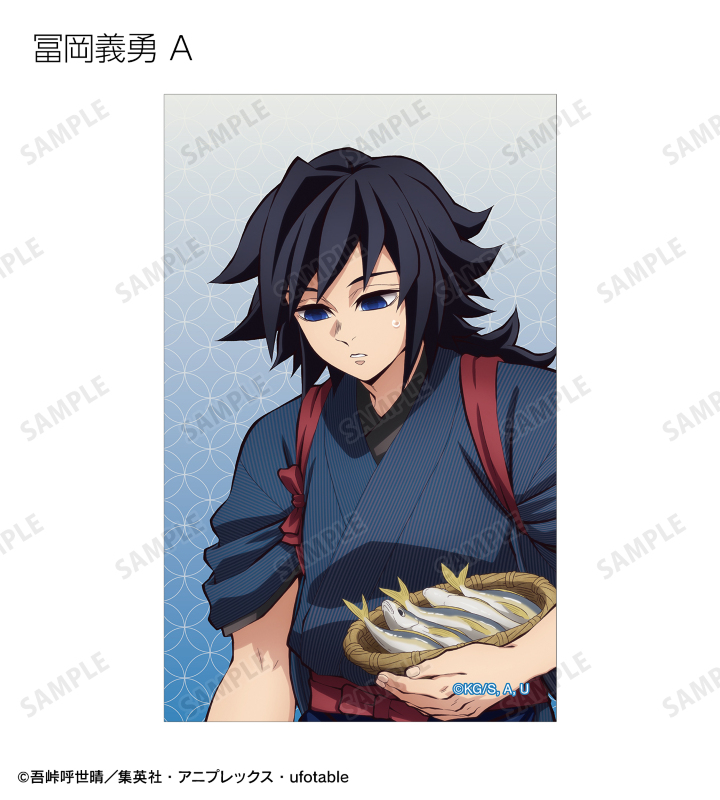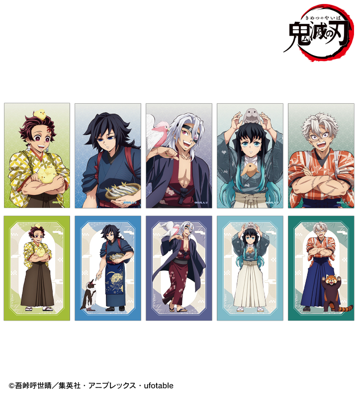 竈門炭治郎、冨岡義勇、宇髄天元、時透無一郎、不死川実弥の描き下ろしイラストをイラストカードに仕上げました。