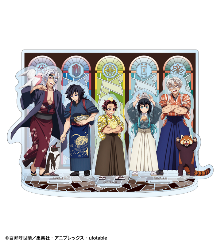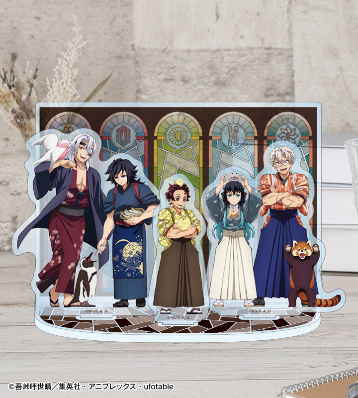 竈門炭治郎、冨岡義勇、宇髄天元、時透無一郎、不死川実弥の描き下ろしイラストをアクリルジオラマに仕上げました。