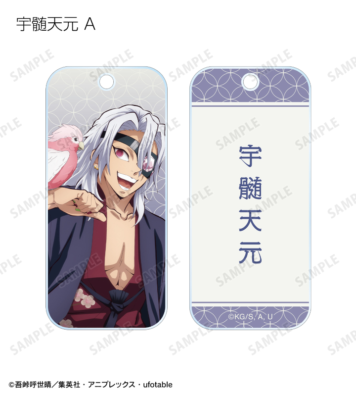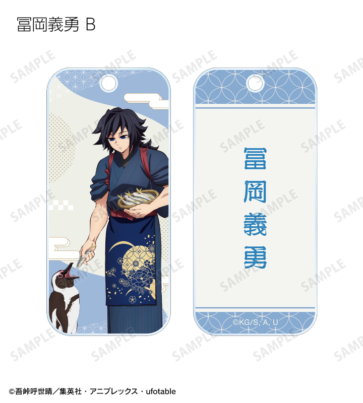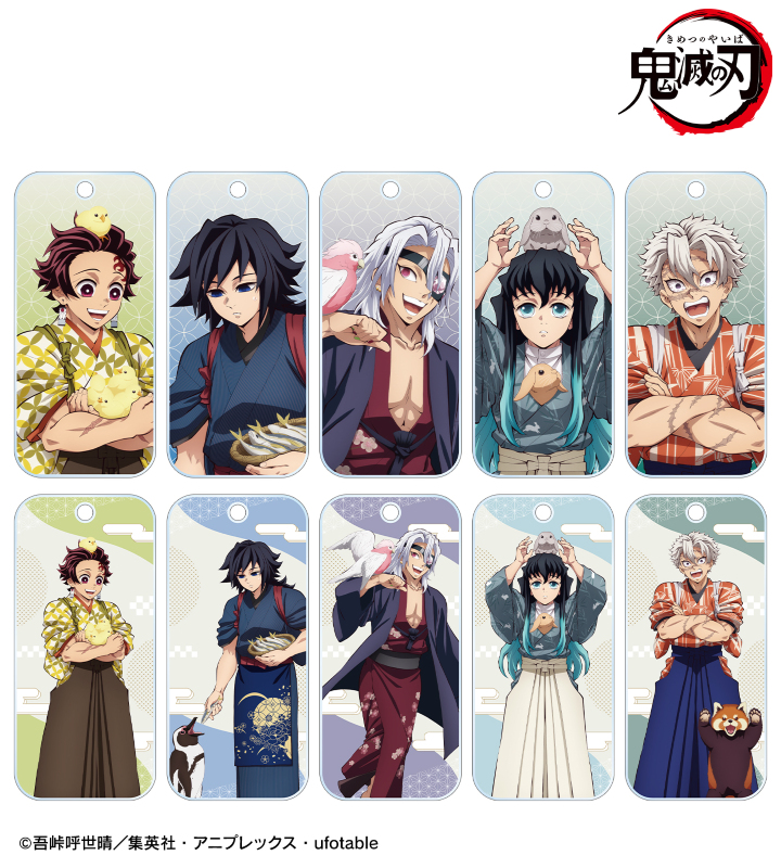 竈門炭治郎、冨岡義勇、宇髄天元、時透無一郎、不死川実弥の描き下ろしイラストをアクリルキータグに仕上げました。