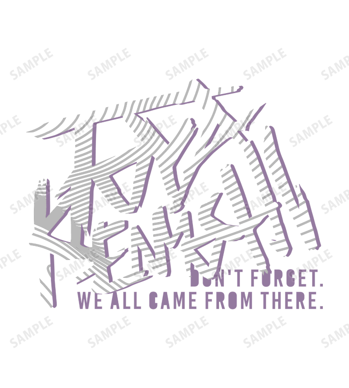 正面には「TOYA KENMOCHI」の文字と、剣持刀也さんが教祖を務める宗教「虚空教」の教義である「Don't forget. We all came from there.」をデザイン。