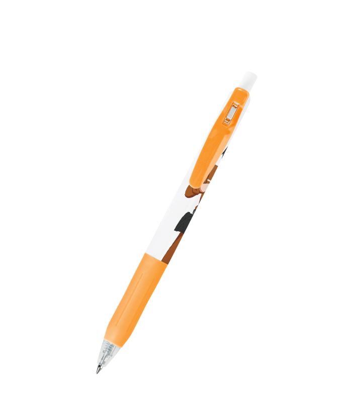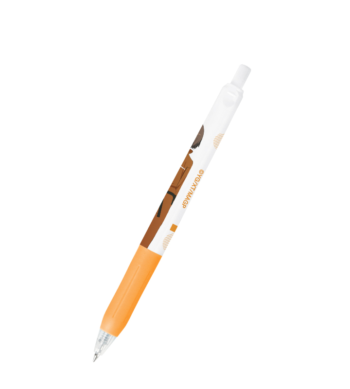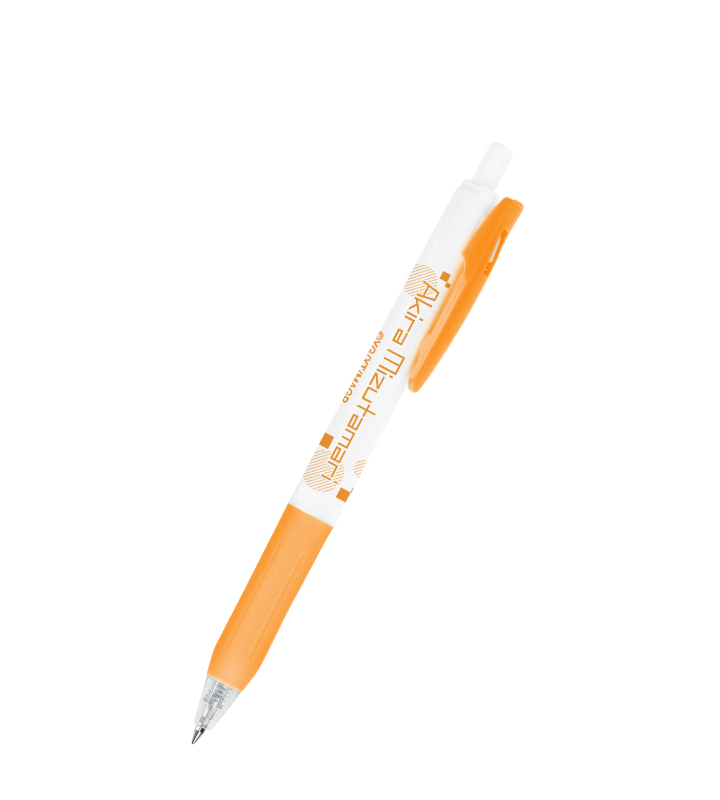 水溜 明のイラスト、キャラクターの名前をサラサクリップのボールペンに仕上げました。