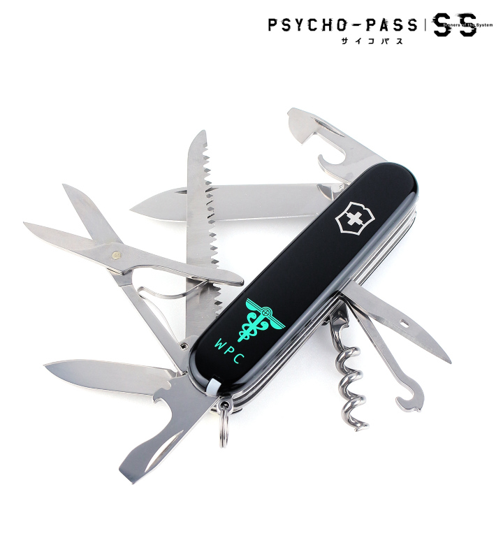 『PSYCHO-PASS サイコパス Sinners of the System』から『ビクトリノックス』のアイテム「ハントマン」の登場です。 公安局のマークをプリントを施したデザインに仕上げました。 「ハントマン」は、アウトドアや防災用品として使用頻度の高い15の機能をバランスよく搭載しています。 アウトドアや旅行など様々なシーンでご活用いただけます。