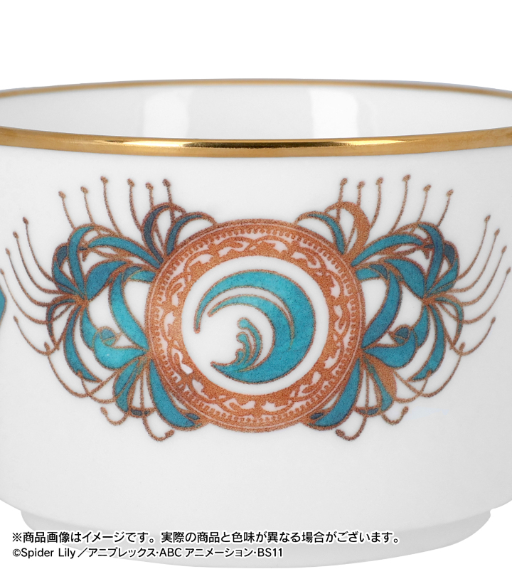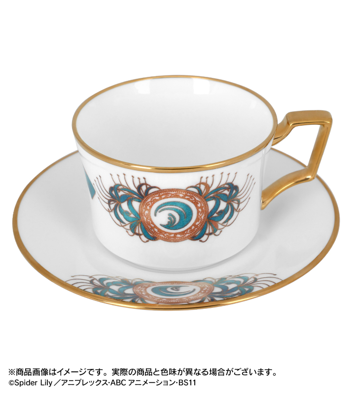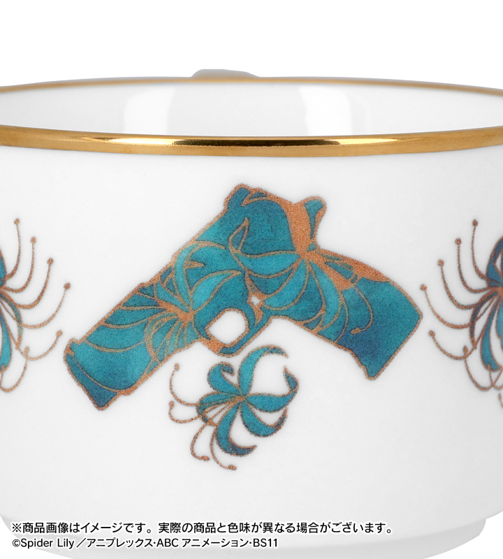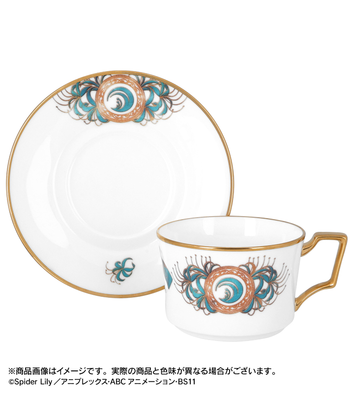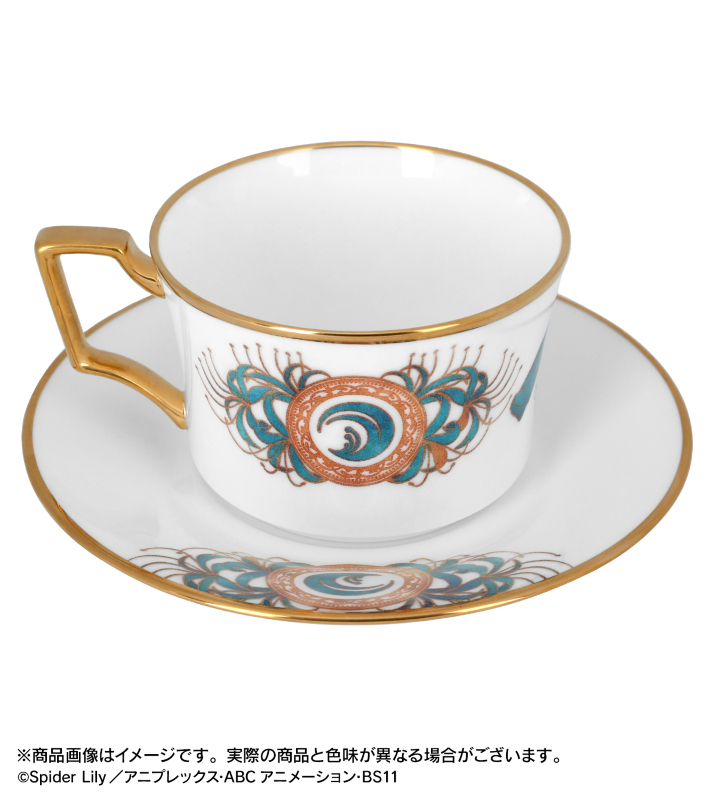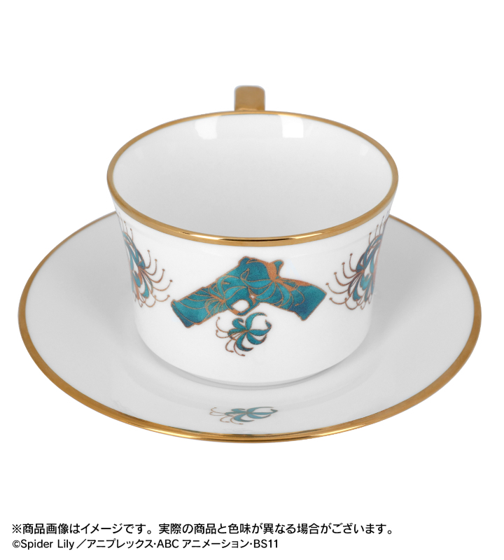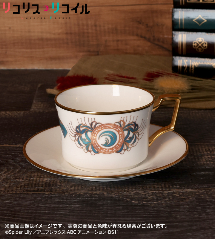 リコリスマーク、彼岸花が特徴的な井ノ上たきなをモチーフにした高級感のあるカップ&ソーサーです。