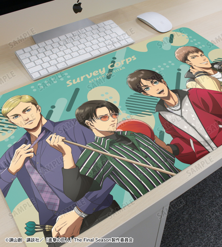 エレン、ジャン、エルヴィン、リヴァイの描き下ろしイラストをメインにマルチデスクマットに仕上げました。