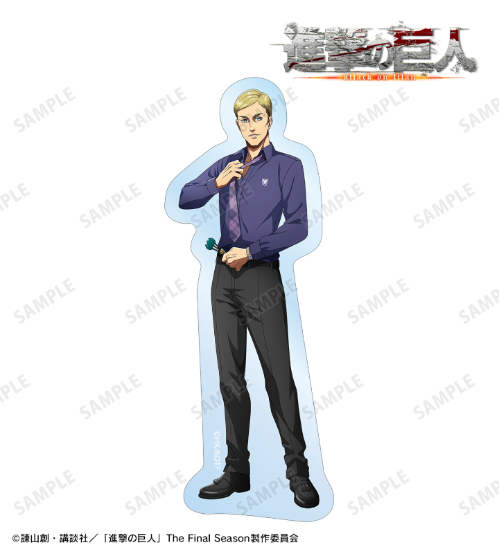 TVアニメ『進撃の巨人』×「ROUND1」のコラボレーションアイテム「描き下ろし エルヴィン レトロ風ファッションver. ダイカットステッカー」の登場です。