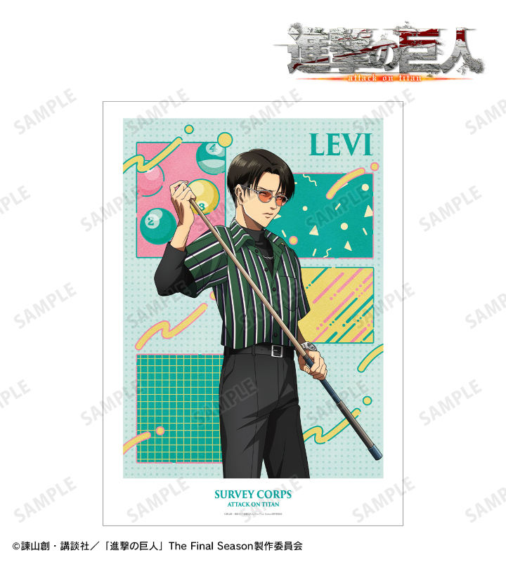 TVアニメ『進撃の巨人』×「ROUND1」のコラボレーションアイテム「描き下ろし リヴァイ レトロ風ファッションver. A3マット加工ポスター」の登場です。