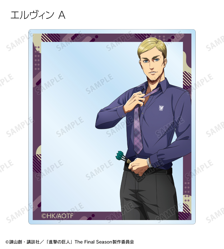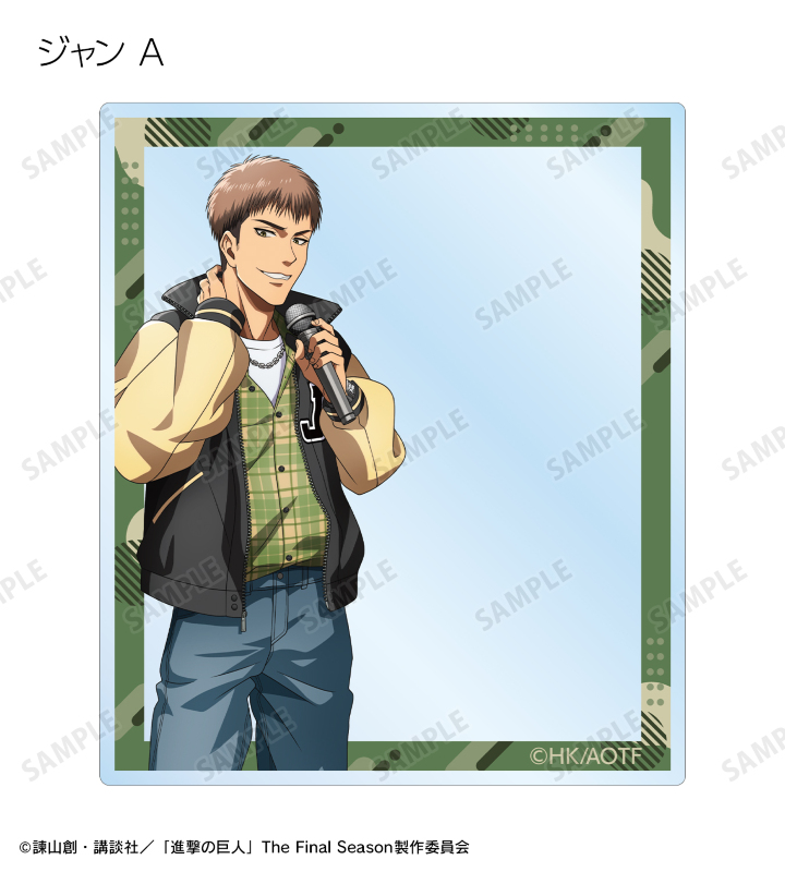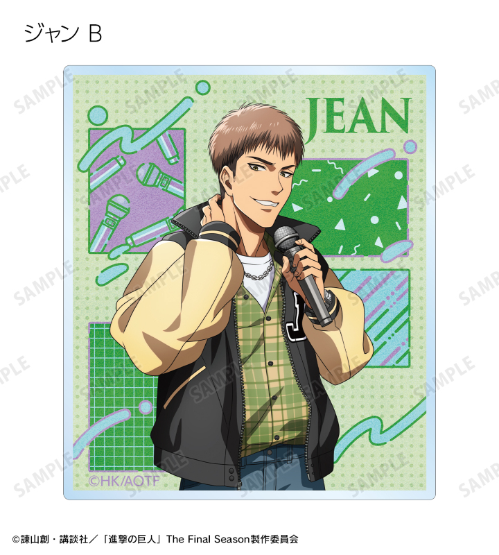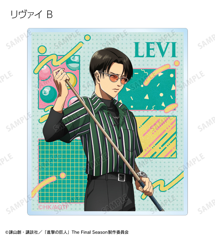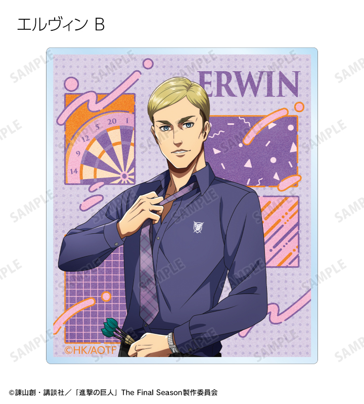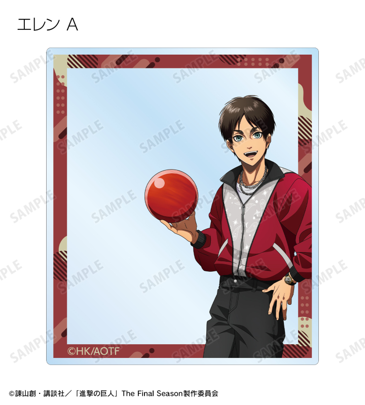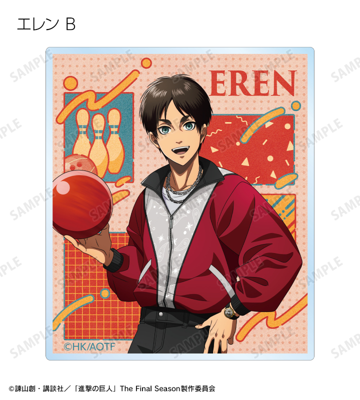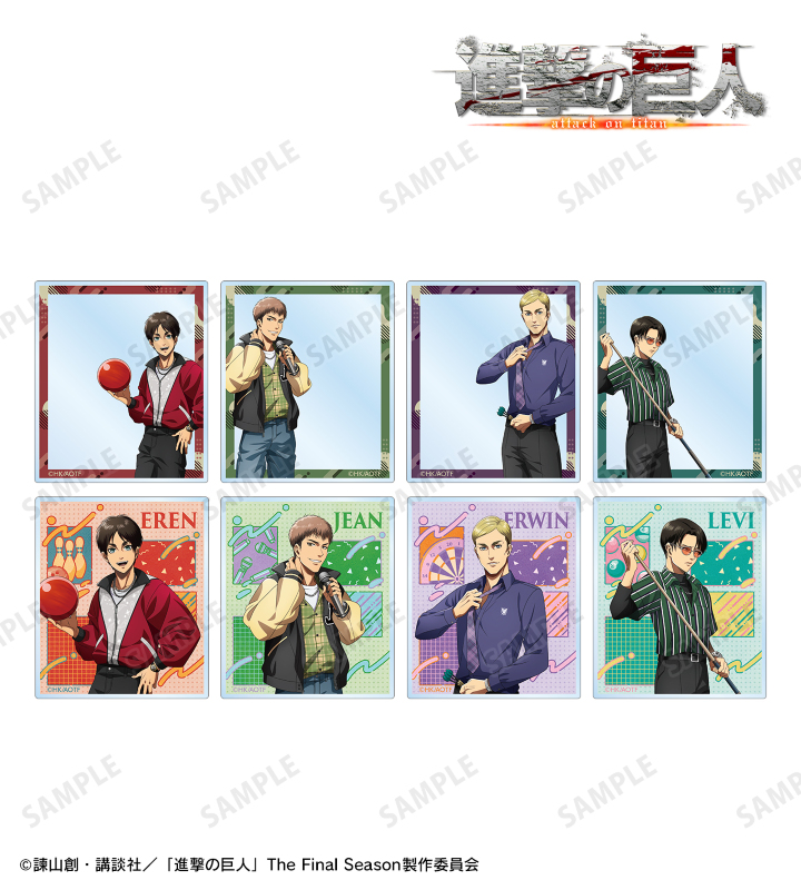 TVアニメ『進撃の巨人』×「ROUND1」のコラボレーションアイテム「描き下ろし レトロ風ファッションver. トレーディングアクリルカード」の登場です。