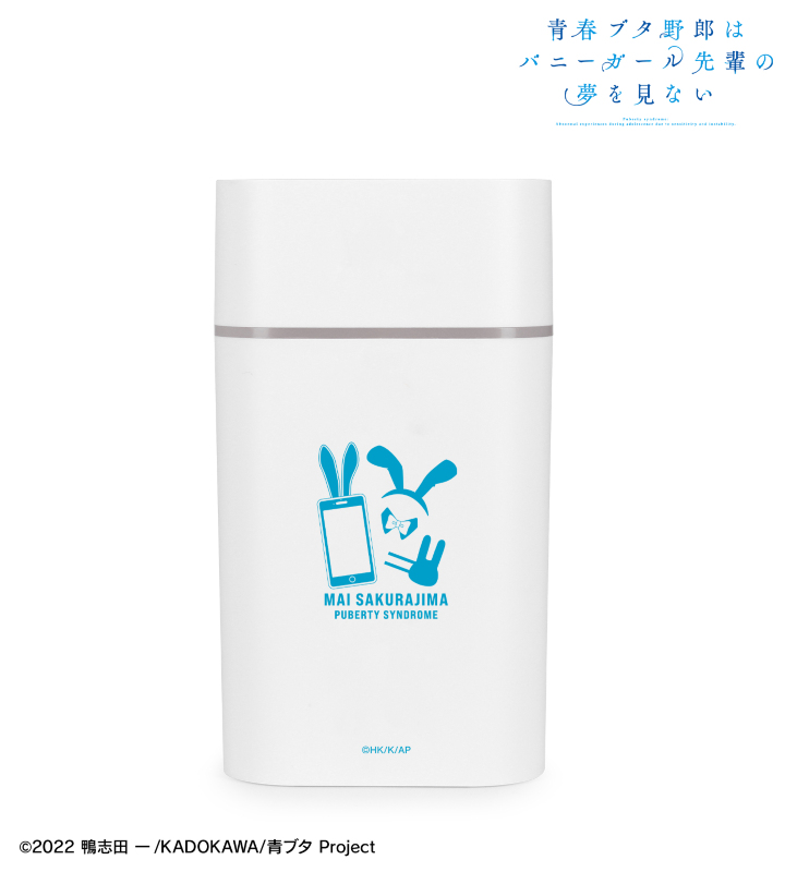 桜島麻衣の描き起こしモチーフ、キャラクターの名前、思春期症候群の英字を卓上加湿器に仕上げました。