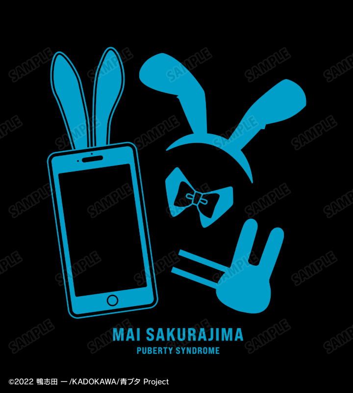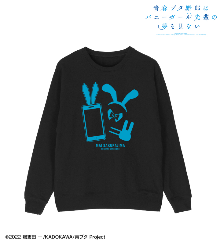 桜島麻衣の描き起こしモチーフ、キャラクターの名前、思春期症候群の英字をトレーナーに仕上げました。