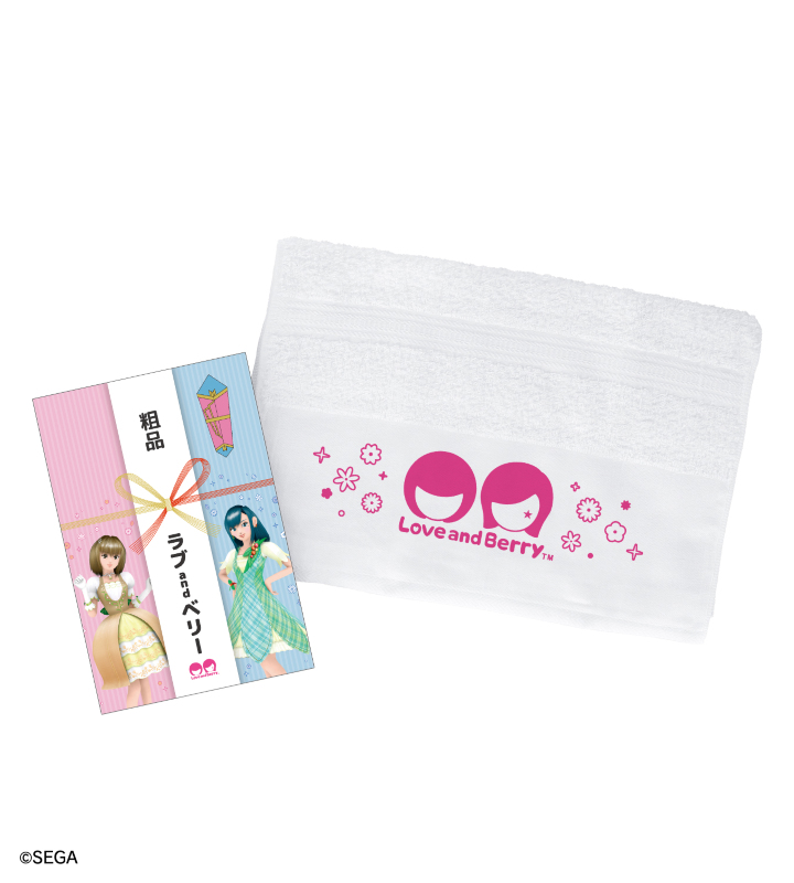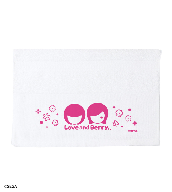 ラブ、ベリーのアイコンをレイアウトしたタオルです。