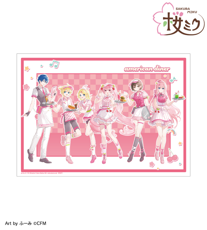 『桜ミク』×「ROUND1」のコラボレーションアイテム「描き下ろし 集合 Art by ふーみ アメリカンダイナーver. A3マット加工ポスター」の登場です。