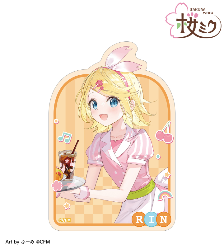 『桜ミク』×「ROUND1」のコラボレーションアイテム「描き下ろし 鏡音リン アメリカンダイナーver. Art by ふーみ ダイカットステッカー」の登場です。