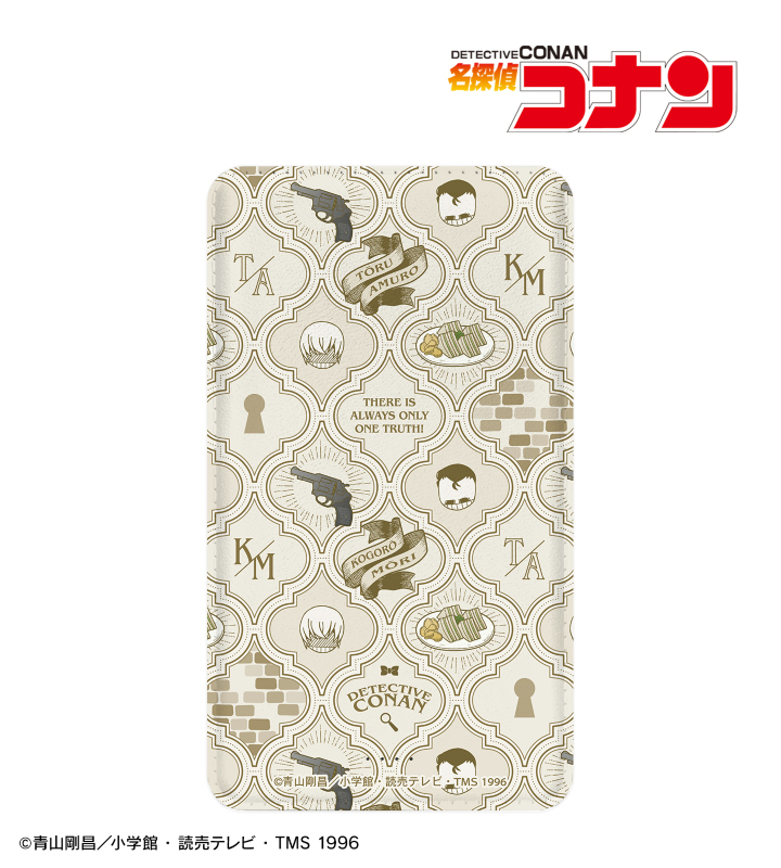 毛利小五郎、安室透をイメージした描き起こしモチーフイラスト、作品名、キャラクターのイニシャルをモバイルバッテリーに仕上げました。