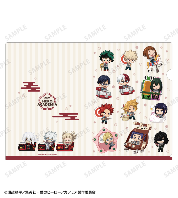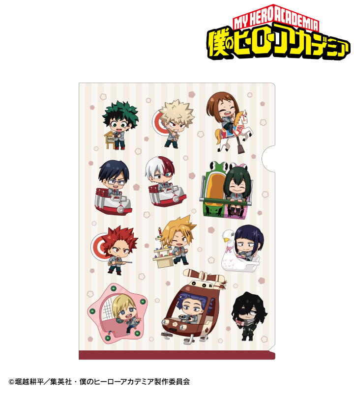 TVアニメ『僕のヒーローアカデミア』×「浅草花やしき」のコラボレーションアイテム「集合 ちびキャラ アトラクションver. クリアファイル」の登場です。