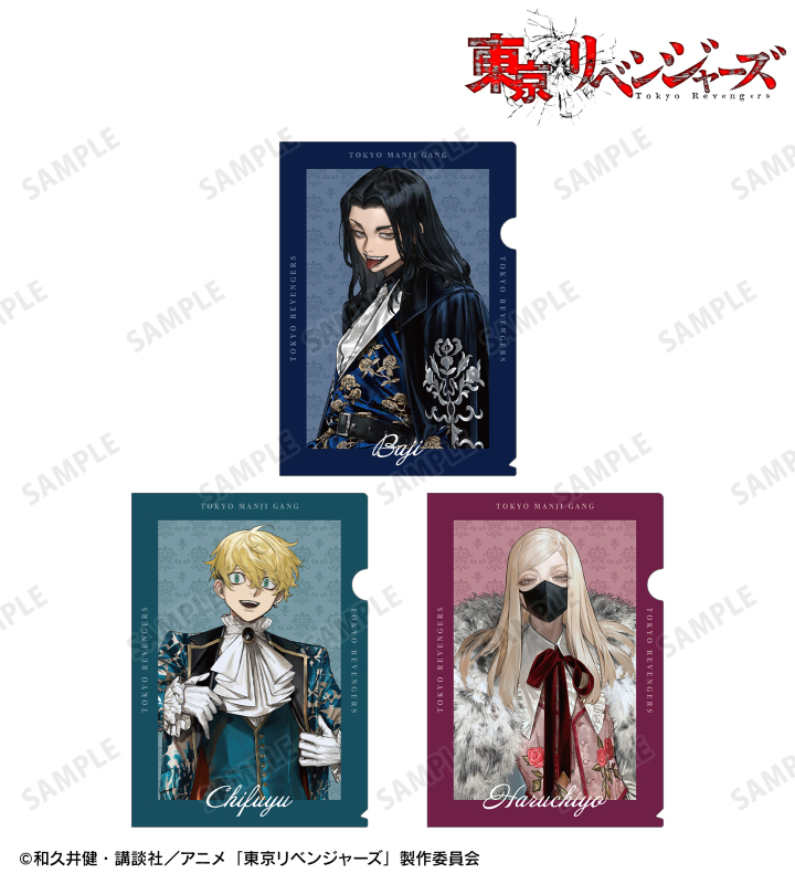 TVアニメ『東京リベンジャーズ』×イラストレーター「AU」のコラボレーションアイテム「描き起こし Art by AU 場地 圭介&松野 千冬&三途 春千夜 スーツver. クリアファイル3枚セット」の登場です。