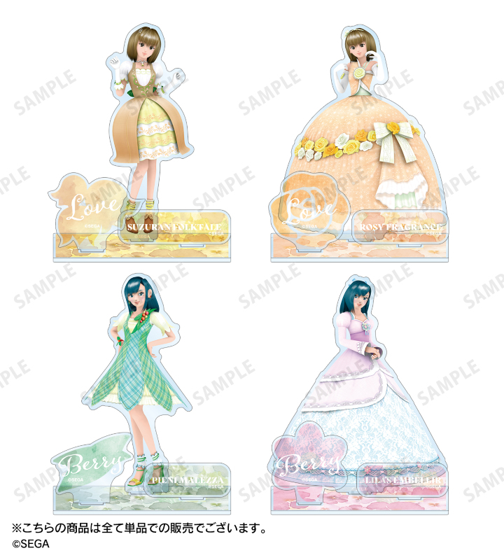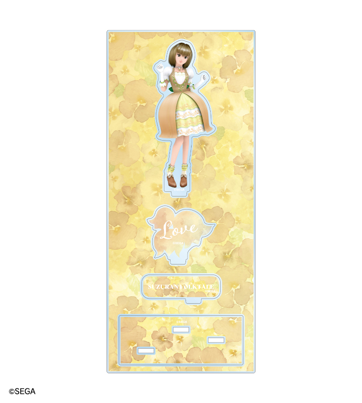 ラブのイラスト、キャラクターの名前、オシャレまほうカードの名前をパーツ付きのBIGなアクリルスタンドに仕上げました。