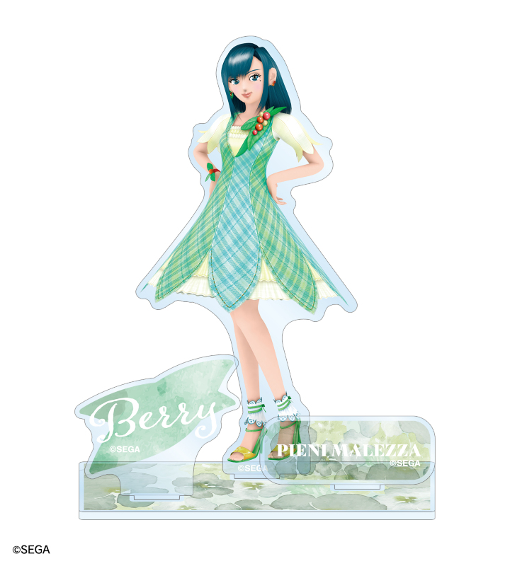ベリーのイラスト、キャラクターの名前、オシャレまほうカードの名前をパーツ付きのBIGなアクリルスタンドに仕上げました。