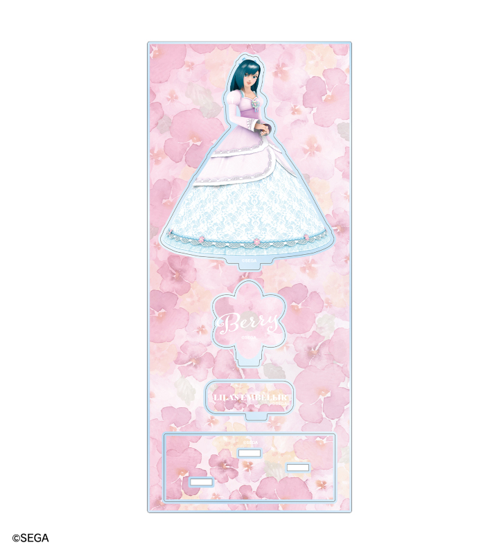 ベリーのイラスト、キャラクターの名前、オシャレまほうカードの名前をパーツ付きのBIGなアクリルスタンドに仕上げました。