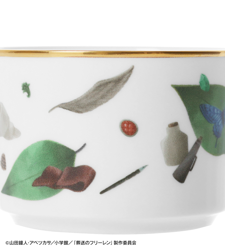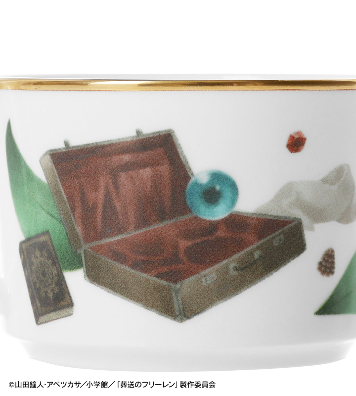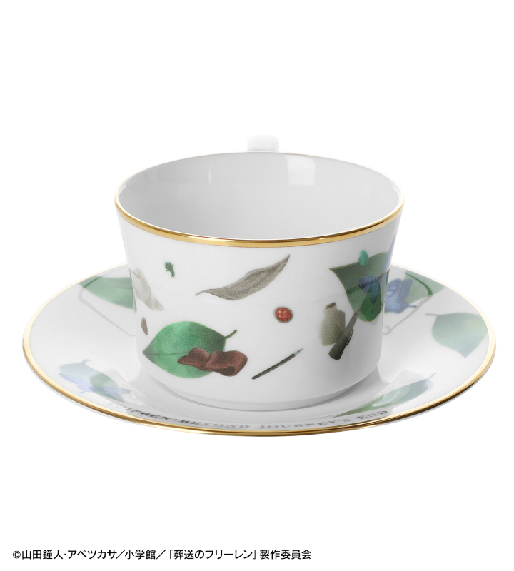 カップ裏、ソーサー裏にはノリタケロゴと、作品タイトル『葬送のフリーレン』の文字をそれぞれ印字しております。