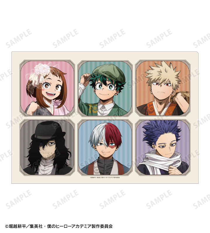 緑谷出久、爆豪勝己、麗日お茶子、轟焦凍、心操人使、相澤消太の描き下ろしビジュアルをクリアファイルに仕上げました。