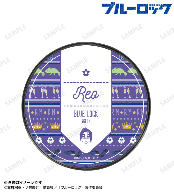 御影 玲王のイラスト、イニシャル、誕生日などのキャラクターや作品のモチーフを描き起こし、総柄デザインのサークル型QI対応充電器に仕上げました。