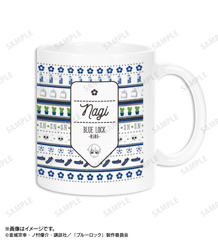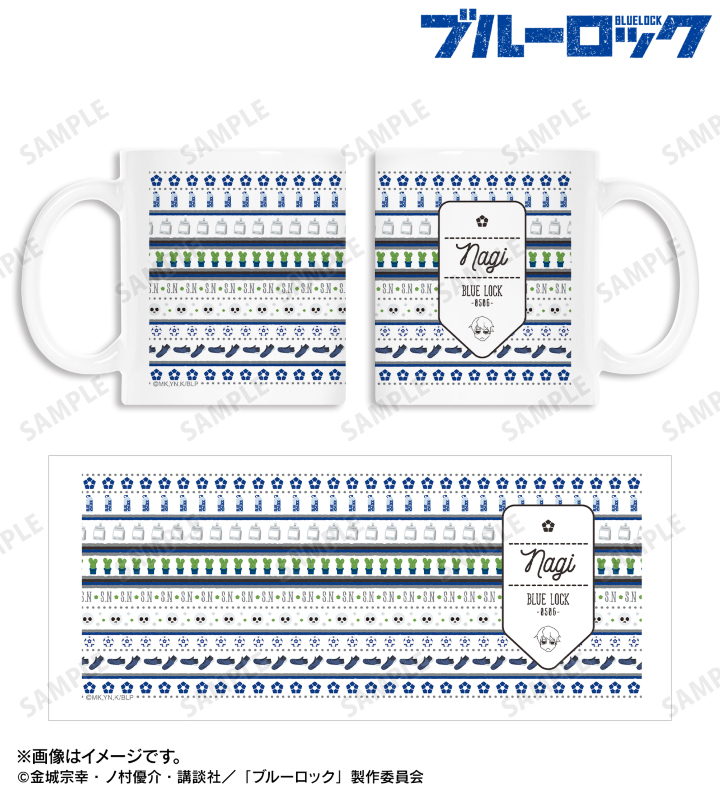 凪 誠士郎のイラスト、イニシャル、誕生日などのキャラクターや作品のモチーフを描き起こし、総柄デザインのマグカップに仕上げました。