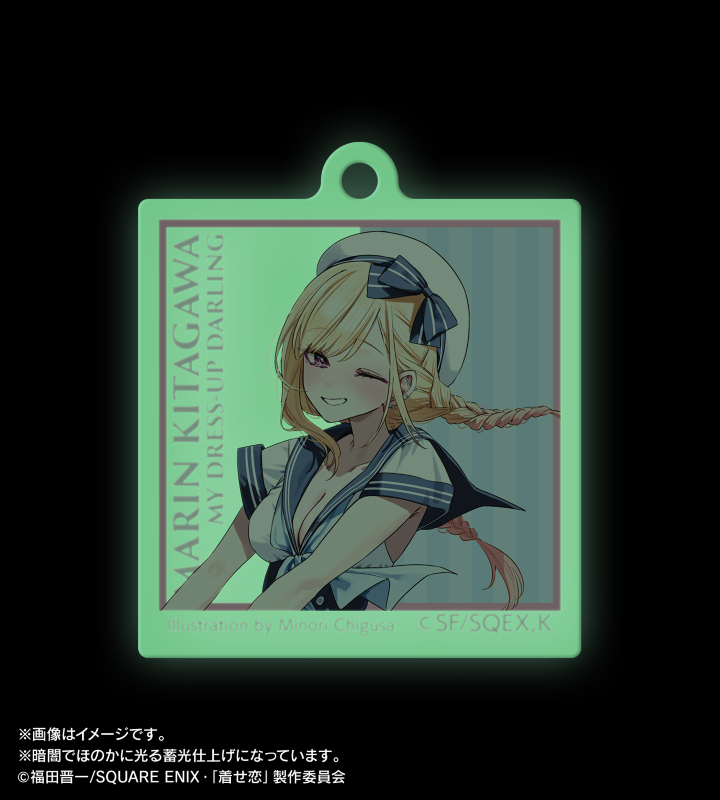 TVアニメ「その着せ替え人形は恋をする」×「千種みのり」のコラボレーションアイテム「千種みのりイラスト 喜多川 海夢 セーラー水着ver. 蓄光アクリルキーホルダー」の登場です。