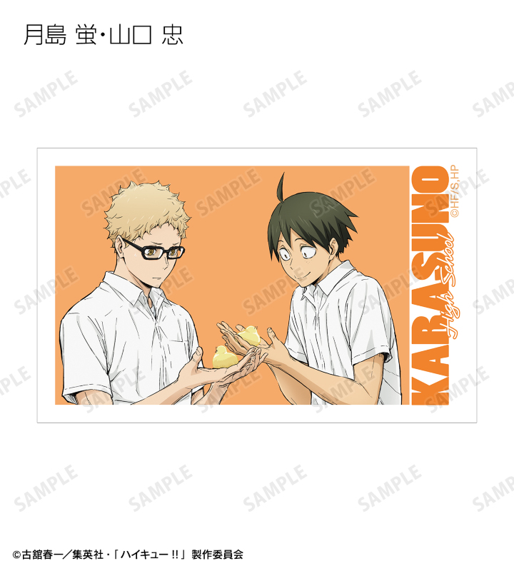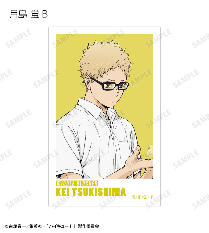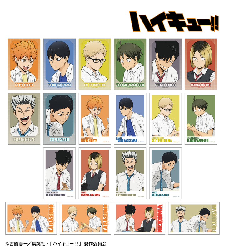 日向翔陽、影山飛雄、月島 蛍、山口 忠、黒尾鉄朗、孤爪研磨、木兎光太郎、赤葦京治の描き下ろしビジュアルをビジュアルカードに仕上げました。